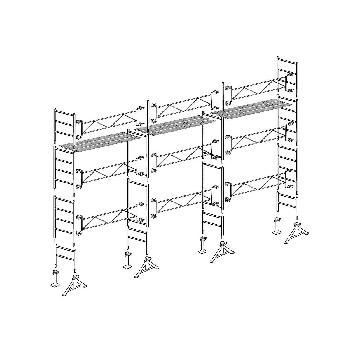Échafaudage Altrad 49 maçon 70 m² Cette gamme d'échafaudage en acier galvanisé est conçu pour une bonne maniabilité et offre aux entreprises de gros oeuvre de nombreuses solutions de montage. Grâce à ses nombreux composants et leur système d'accrochage à 360°, tous les chantiers de maçonnerie et couverture, peuvent être géré sans difficulté. Largeur : 0,95 m Longueur de travail : 10 m Hauteur de travail : 7 m Classe 4 (300 kg/m2) Diamètre des montants de 48,3 mm, épaisseur 2,6 mm. Top10x7pA : Échafaudage avec 1 niveau de plateaux acier Composition de l'échafaudage : - 4 pieds simple - 4 pieds fixe - 4 échelles de 2 m sans barreau - 4 échelles de 2 m / 4 barreaux - 2 échelles de 1,50 m / 3 barreaux - 4 échelles de 0,85 m / 2 barreaux - 2 piliers de faîte de 1,20 m - 9 gardes corps fixe de 3 m Planchers : - 9 planchers acier 3 m * 0,30 mSpécifications techniques