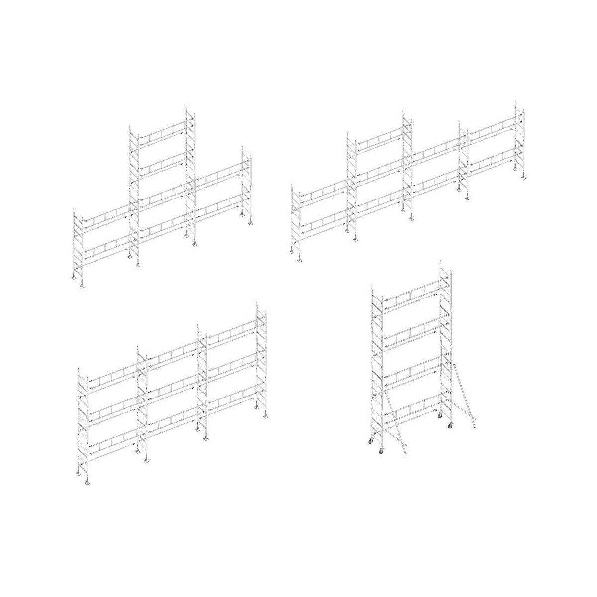 Échafaudage en acier peint (galvanisation en option) de la gamme PHENIX Tous Travaux, fabriqué dans notre usine à Saint-Étienne. Cet échafaudage est 4 en 1. Réglage des planchers tous les 50 cm en hauteur. 4 possibilités d'échafauder des surfaces en : 1 : Roulant 3 m de long x 9 m de hauteur de travail. 2 : 9 m de long x 7 m de hauteur de travail. 3 : 9 m de long x 9 m de hauteur de travail faitage. 4 : 12 m de long x 7 m de hauteur de travail faitage. - Montants des échelles diamètre 45 mm épaisseur 2 mm. - Surface de travail confortable de 3 m x 0,80 m. - Rattrapage de niveau millimétrique jusqu'à 40 cm grâce aux pieds vérins. - Grandes roues diamètre 200 mm pivotantes avec frein. - Système d'accroche à clavettes. Échafaudage conforme aux normes en vigueur : NF EN 12810-1 et 2 et EN 12811-1 et 2. HD 1000 du 20 décembre 1988 (matériaux, dimensions, charges, …). EN 287-1/A1 de 1997 (certificat qualification soudage). FR51-9 : Structure seule Structure de l'échafaudage : - 10 pieds de 50 cm réglable sur 30 cm - 10 poteaux de départ de 1 m - 4 roues pivotante de diamètre 200 mm avec frein - 12 échelles de 2 m - 9 gardes corps de 3 m - 9 barres de lisse de 3 m Amarrage : - 2 béquilles de 3 m - 2 amarrages piton, encrages et colliers Poids : 400 kgSpécifications techniques