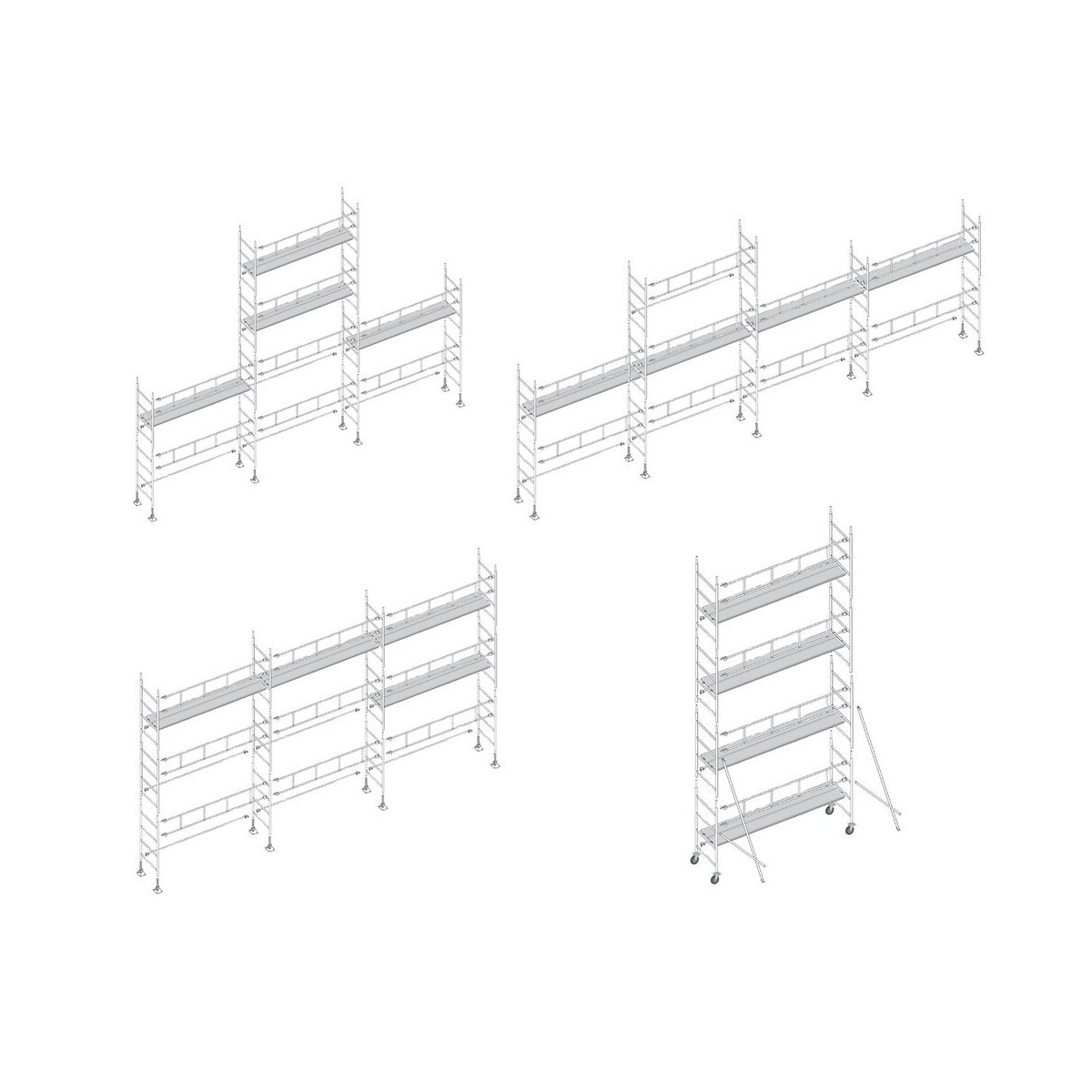 Échafaudage en acier peint (galvanisation en option) de la gamme PHENIX Tous Travaux, fabriqué dans notre usine à Saint-Étienne. Cet échafaudage est 4 en 1. Réglage des planchers tous les 50 cm en hauteur. 4 possibilités d'échafauder des surfaces en : 1 : Roulant 3 m de long x 9 m de hauteur de travail. 2 : 9 m de long x 7 m de hauteur de travail. 3 : 9 m de long x 9 m de hauteur de travail faitage. 4 : 12 m de long x 7 m de hauteur de travail faitage. - Montants des échelles diamètre 45 mm épaisseur 2 mm. - Surface de travail confortable de 3 m x 0,80 m. - Rattrapage de niveau millimétrique jusqu'à 40 cm grâce aux pieds vérins. - Grandes roues diamètre 200 mm pivotantes avec frein. - Système d'accroche à clavettes. Échafaudage conforme aux normes en vigueur : NF EN 12810-1 et 2 et EN 12811-1 et 2. HD 1000 du 20 décembre 1988 (matériaux, dimensions, charges, …). EN 287-1/A1 de 1997 (certificat qualification soudage). FR51-9P : Structure + 1 niveau de plateaux Structure de l'échafaudage : - 10 pieds de 50 cm réglable sur 30 cm - 10 poteaux de départ de 1 m - 4 roues pivotante de diamètre 200 mm avec frein - 12 échelles de 2 m - 9 gardes corps de 3 m - 9 barres de lisse de 3 m Planchers : - 8 planchers acier galvanisé de 3 m x 0,36 m Amarrage : - 2 béquilles de 3 m - 2 amarrages piton, encrages et colliers Poids : 579 kg