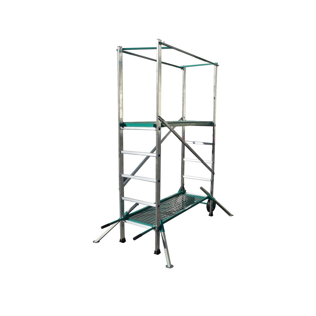 L'échafaudage ESCALUX en aluminium est conçu exclusivement pour le jardinage et bricolage domestique. Système de garde-corps périmétrique total pour éviter les chutes. Hauteur : 3,7 m Charge maximale : 150 kg Grand plateau : 150 x 50 cm 4 pieds télescopiques autobloquants 2 roues d'aide au déplacement gonflables de fort diamètre