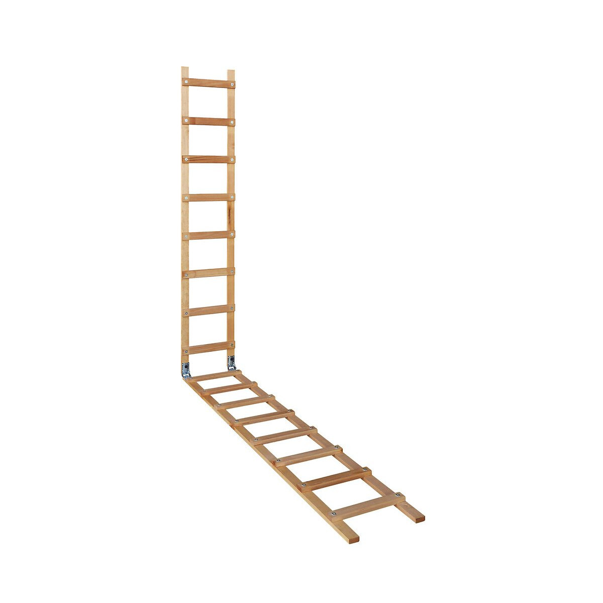 Echelle en bois avec échelons et montants plats aux bords arrondis pour un excellent confort sur toutes les pentes. Coupée en deux dans la longueur, le pliage / dépliage est assuré par 2 charnières en acier avec vis de verrouillage en position dépliée. Assemblage par vis et écrous à griffes. Finition lasurée. Section des montants : 48 x 20 mm. Section des échelons : 48 x 20 mm. Entraxe des marches 25cm Nombre d'échelons dépliée: 20