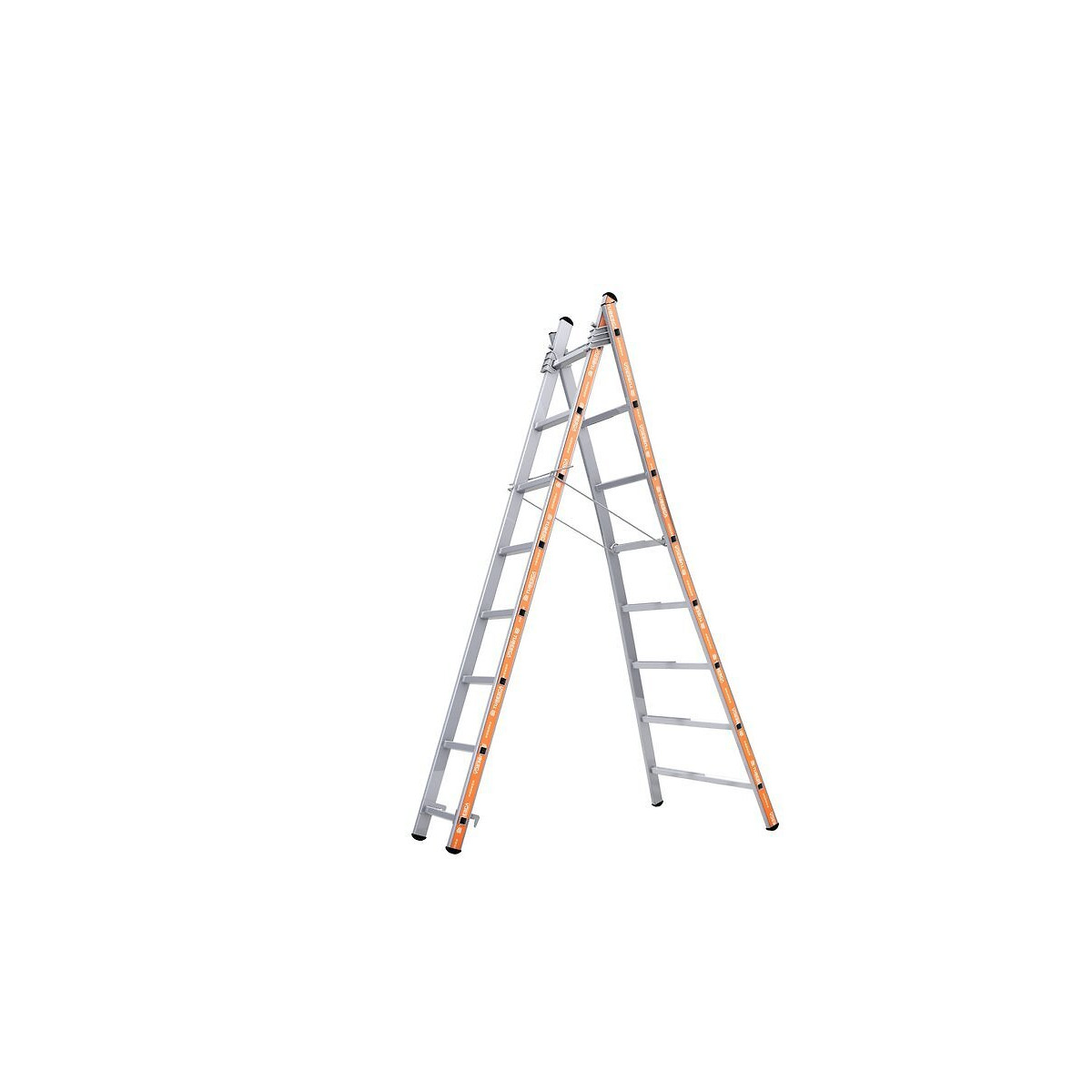 Caractéristiques techniques : Rigidité extrême avec une articulation nervurée renforcée en aluminium moulé et un bras rigide anti-écartement. Légère et maniable pour une mise en place et un transport facilité. Une polyvalence sur sol plat et en escalier. Échelons 30 x 30 mm pour un confort d'utilisation.