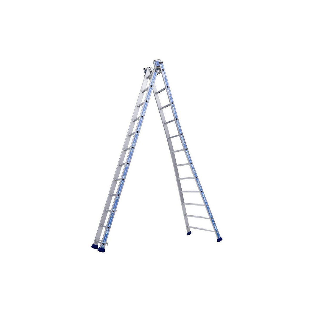 L'échelle Platinium transformable 2 plans en aluminium dispose d'une base évasée, de sabots enveloppants haute sécurité et d'une articulation. Elle garantit résistance, polyvalence et sécurité à tous ses utilisateurs. - Profils renforcés pour plus de stabilité et de durabilité. - Sangle amovible pour passage libre. Marches : 2x12 Longueur dépliée : 6 m Hauteur d'accès avec opérateur : 6,90 m Hauteur en Escabeau avec opérateur : 4,38 m Largeur ouverture Escabeau : 2,48 m Dimension replier : 3,48 m