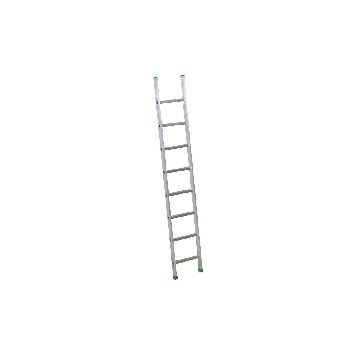 Échelle aluminium à marches larges de 85 mm pour un confort optimal. Grâce à l'inclinaison des échelons à 68°, les pieds reposent sur une surface plane. - Liaison montant / marche par sertissage triple éxpansion. - Patins articulés, recouverts de caoutchouc antidérapant. Marches : 1x8 Longueur d'échelle : 2,60 m Hauteur inclinaison : 2,45 m Largeur : 0,45 m