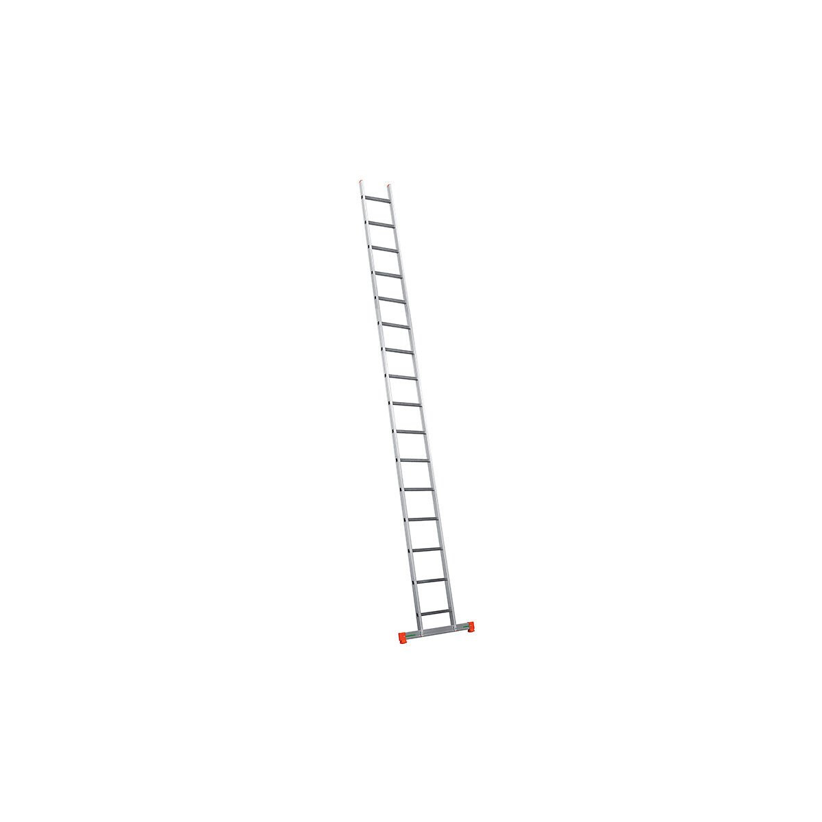 Échelle simple professionnelle tout aluminium, légère et très facile à manipuler. Échelle fiable et résistante. - Liaison montant / échelon par expansion et sertissage. - Patin haute sécurité antidérapant de 5 cm de haut. Marches : 1x16 Longueur d'echelle : 5,02 m Hauteur inclinaison : 4,70 m Largeur : 0,39 m Embase : 1,07 m