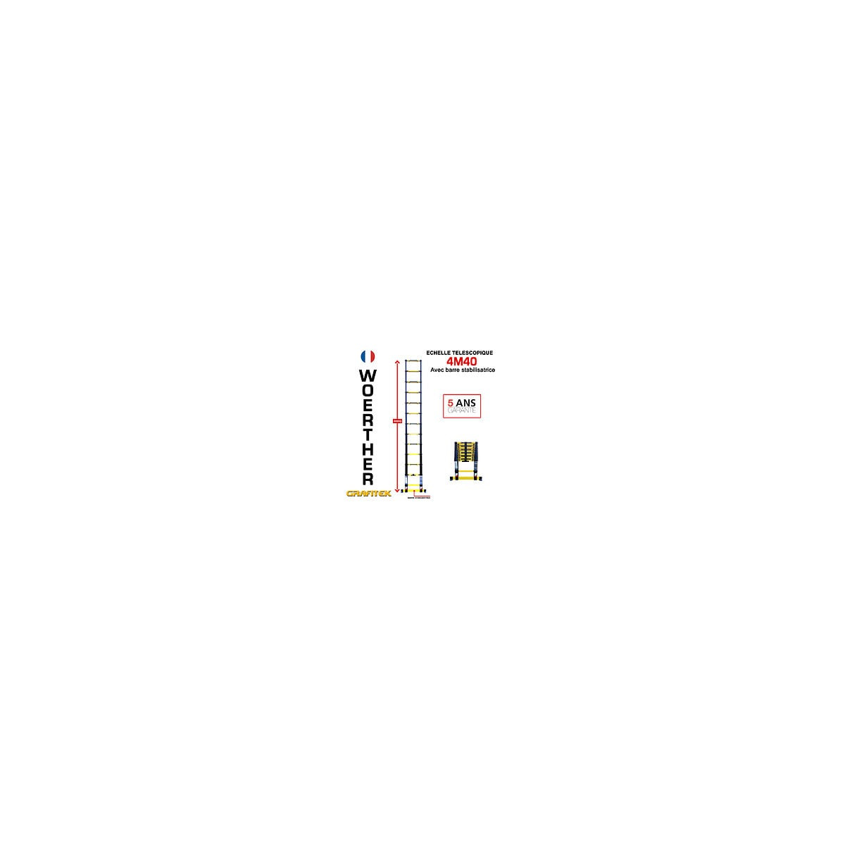 Echelle Télescopique Woerther 4m40 Avec Barre Stabilisatrice - Garantie 5 Ans - Qualité Supérieur