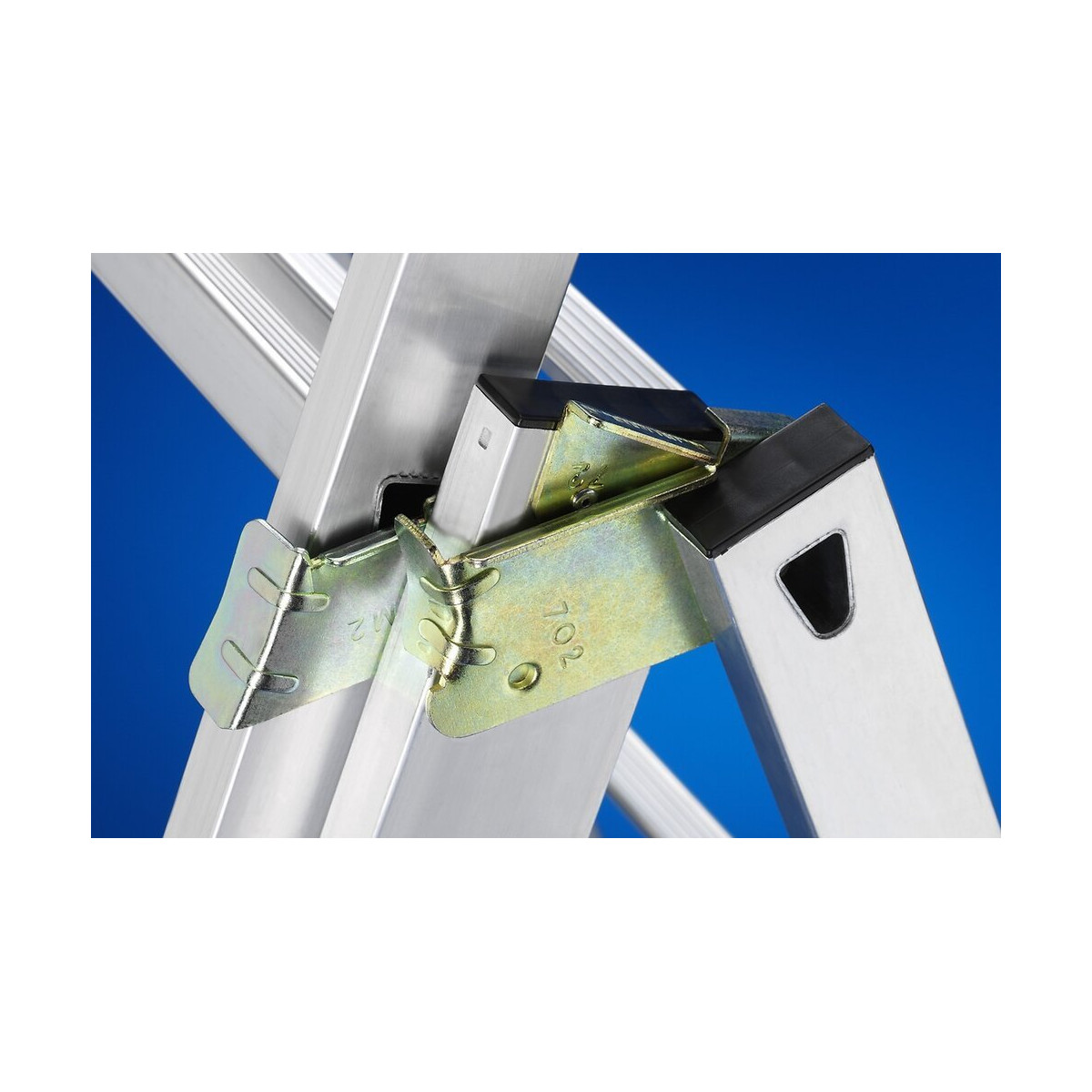 Base rapportée pour une meilleure stabilité. Echelons sertis monoblocs. Echelle transformable 3 plans. 3x11 échelons en aluminium. Base rapportée pour une meilleure stabilité. Echelons sertis monoblocs. Charge max admissible : 150kg. Conforme aux exigences de la Norme EN 131. Garantie 3 ans. Type de produit: Transformable Matière principale: Aluminium Hauteur d'accès (en m): Plus de 8 Hauteur repliée (en m): 3.13 Largeur de la base (en m): 0.87 Hauteur dépliée (en m): 6.82 Poids du produit nu (en kg): 16.8 Usage du produit: Occasionnel Type d'utilisation: Domestique Type de sol: Plat uniquement Type de projet (échelle): Façade, toiture Nombre d'échelons: 33 Nombre de plans: 3 Certificat de conformité: Oui Norme ou label: EN 131 Rattrapage de niveau: Non Roulette de façade: Non Type d'échelon: Triangulaire Produit emballé : hauteur (en cm): 308 Produit emballé : largeur (en cm): 46 Produit emballé : profondeur (en cm): 16 Produit emballé : poids (en kg): 16.8 Indication du geste de tri (triman): Nos produits et emballages peuvent faire l'objet d'une consigne de tri. Pour en savoir plus : www.quefairedemesdechets.fr