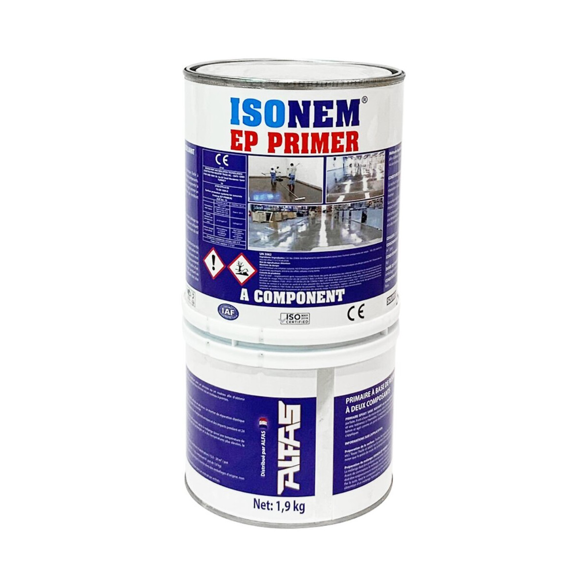 ISONEM EP PRIMER est un primaire époxy sans solvant bi-composant. Il est transparent et hygiénique, facile à appliquer, d’adhérence parfaite. ISONEM EP PRIMER offre une faible viscosité et une tolérance à l'humidité, il augmente la résistance du béton en remplissant les espaces capillaires des sols en béton et agit comme un pont d'adhérence pour les peintures et revêtements époxy ou polyuréthane qui viendront s’appliquer. Surface réalisable avec 1 pot de 5 L ± 15 m² Avant l’utilisation, veuillez consulter la fiche produit du fabricant - disponible sur alfas.fr