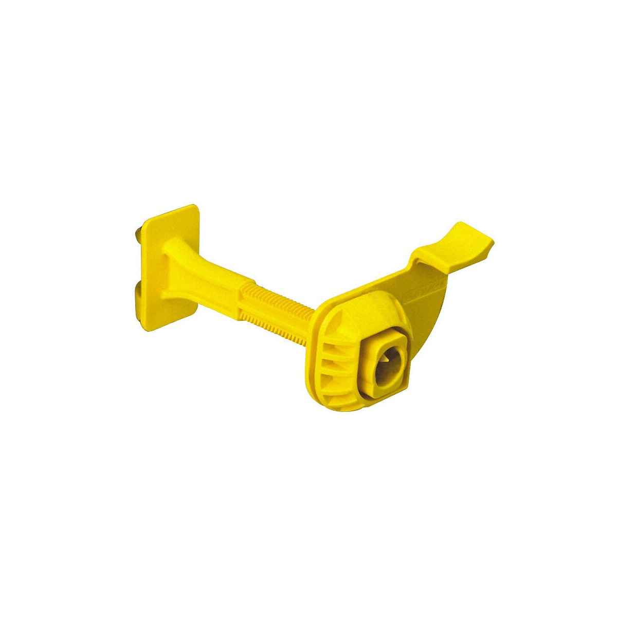 Appui composé d'une entretoise à clipser sur une fourrure métallique horizontale fixée au mur et d'un cavalier de réglage.