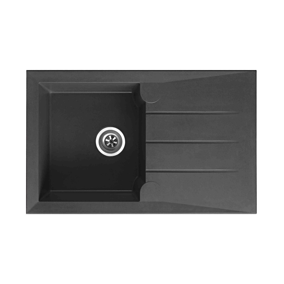 Evier Quartzolit Granit gris titane, 1 bacCaractéristiques : 1 égouttoir 81x50 réversible vidage manuel bonde diamètre 90mm