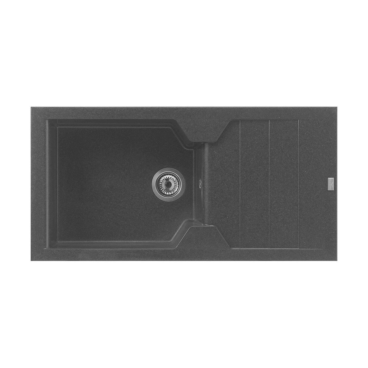 Evier Quartzolit Granit Gris Titane, 1 grand bacCaractéristiques : 1 égouttoir 100x50 réversible vidage manuel bonde diamètre 90mm