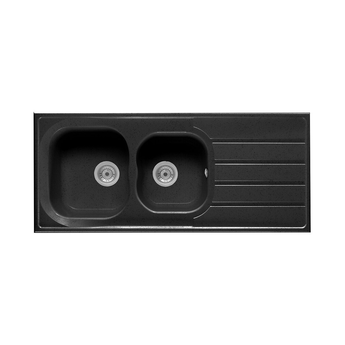 Evier SMC Noir , 2 bacsCaractéristiques : 1 égouttoir 116x50,réversible vidage manuel,bonde diamètre 90mm