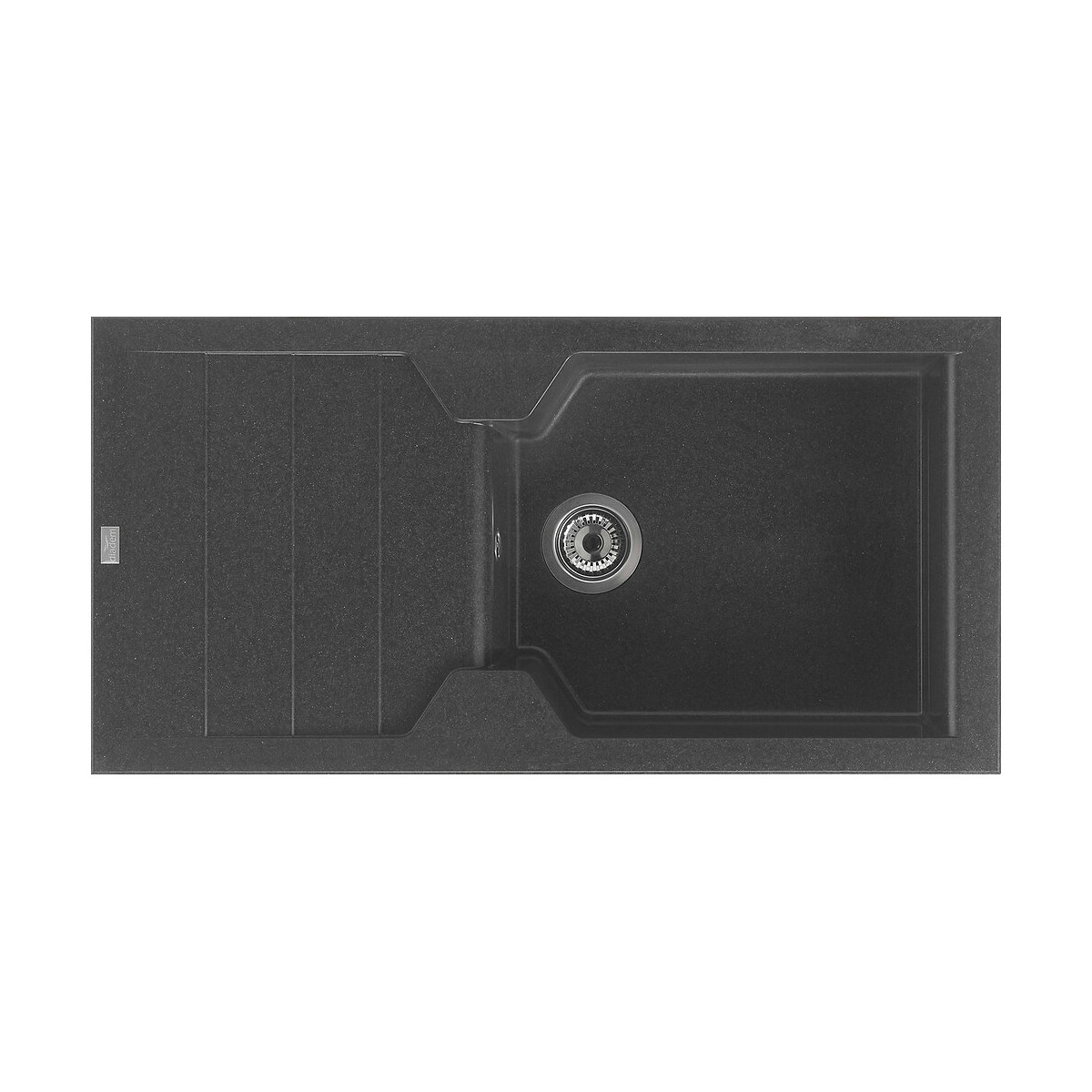 Evier Quartzolit Granit Noir, 1 grand bacCaractéristiques : 1 égouttoir 100x50 réversible vidage manuel bonde diamètre 90mm