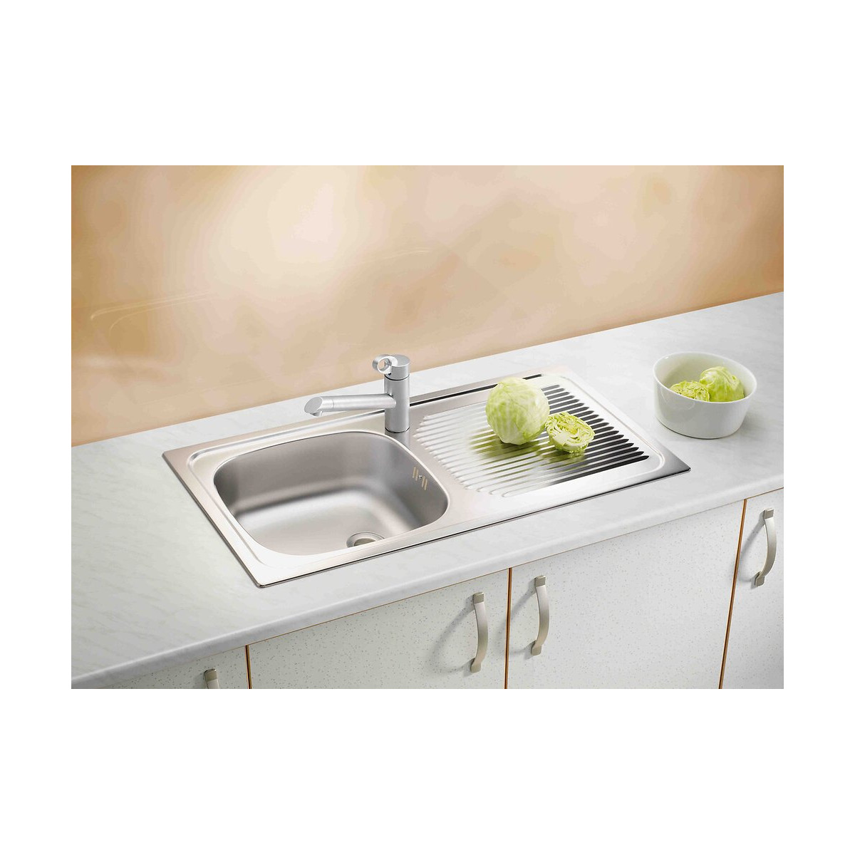 Evier Inox , 1 bac Caractéristiques : 1 égouttoir 86x44 réversible fourni sans vidage trou de bonde 60 mmSpécifications techniques