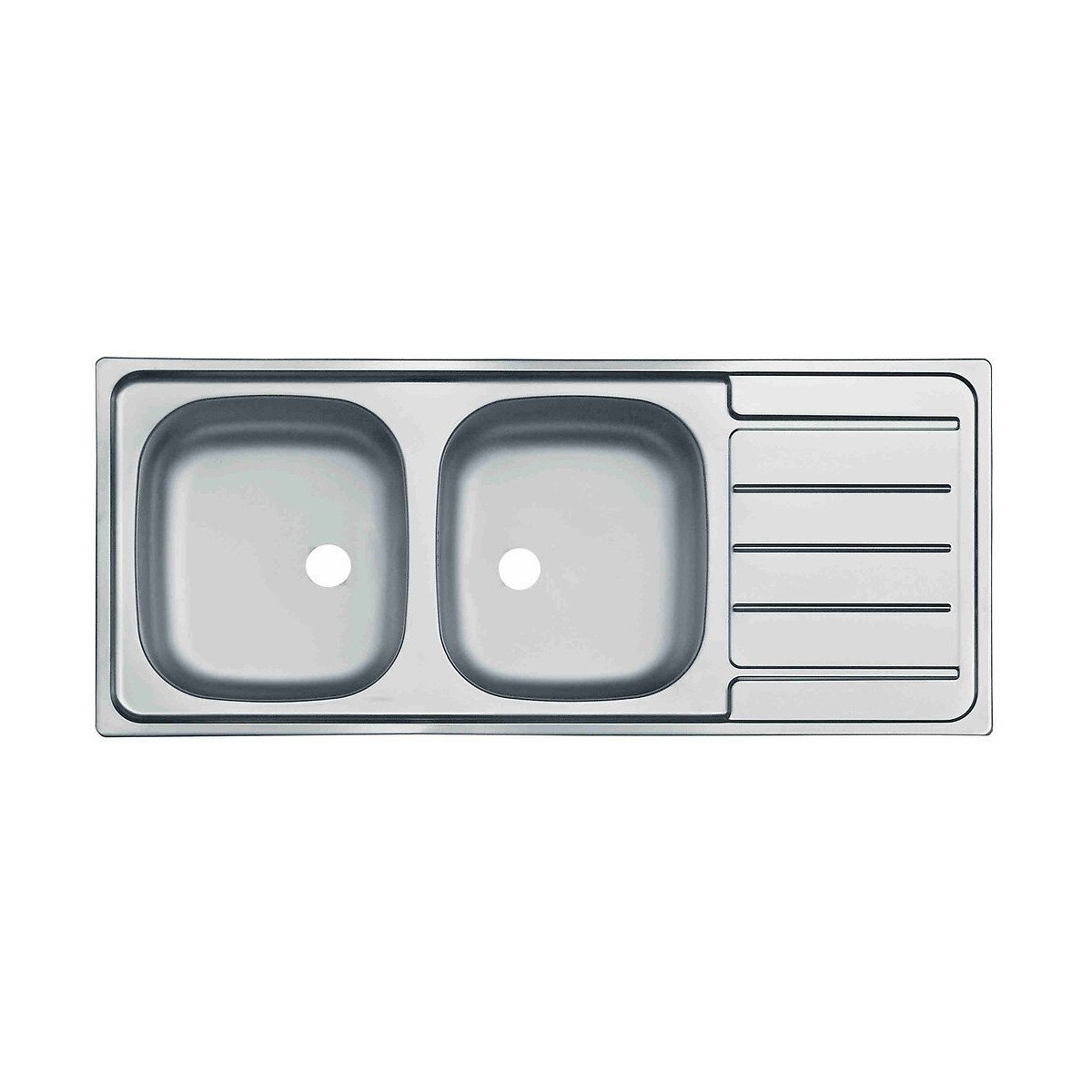 Evier Inox , 2 bacs Caractéristiques : 1 égouttoir 116x50 réversible fournis sans vidage trou de bonde 60 mm