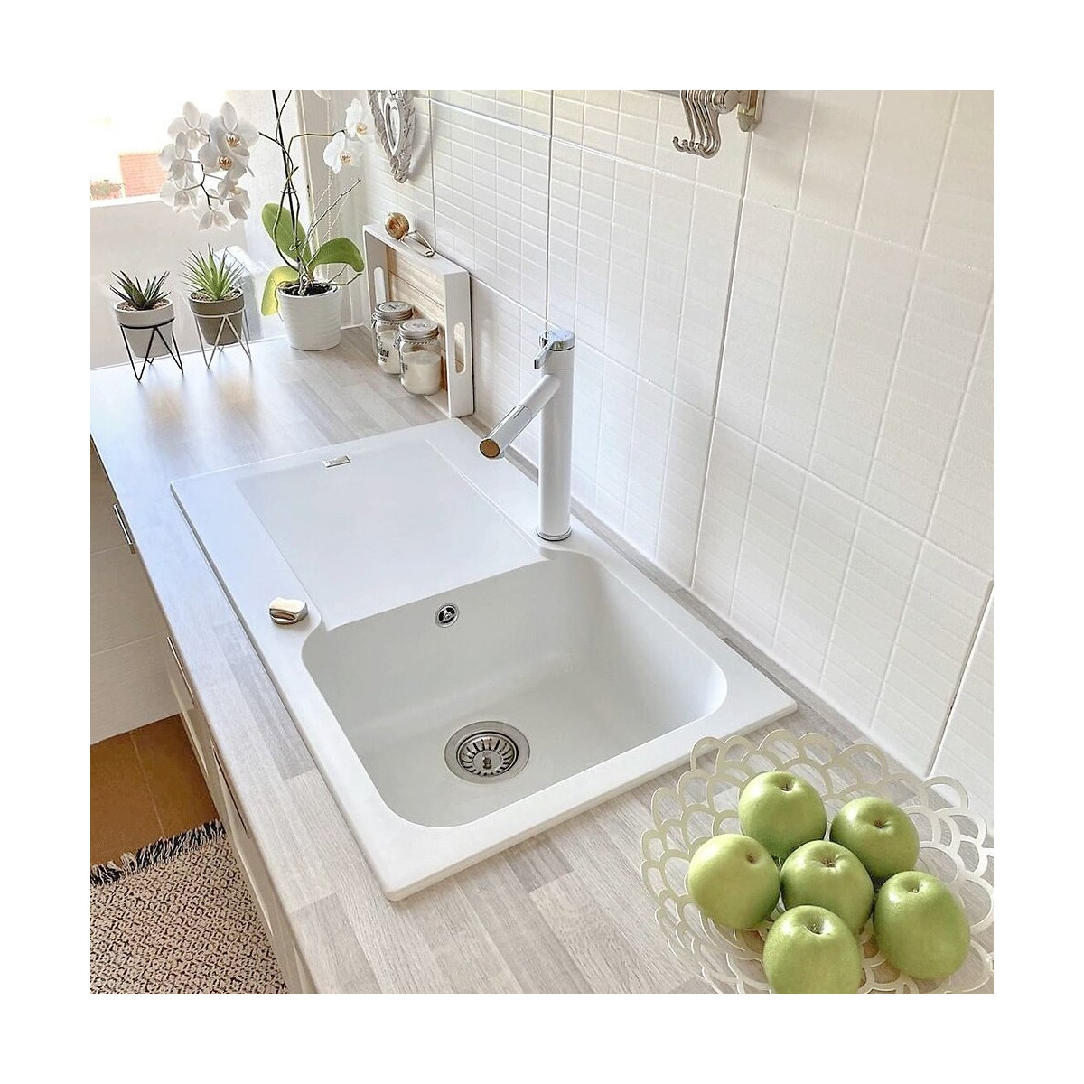 Lisse Évier Réversible 1 Cuve 1 Égouttoir En Résine Blanc