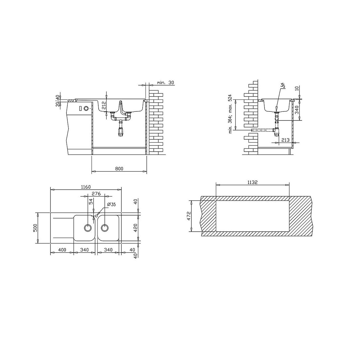Cet évier est le rêve de toute personne qui souhaite avoir une cuisine parfaitement élégante. En résine, de couleur blanc, il détient deux cuves. Les pattes de fixations sont incluses et il est facilement posable. DESIGN : - Evier 2 cuve avec 1 égouttoir. - Matière en Résine blanche. CARACTERISTIQUES : - Vidage automatique. - Pré percé pour une installation simplifiée du mitigeur. - 2 cuves 1 égoutoir - A poser dans un caisson de 80cm largeur minimum. - Kit de fixation - Réversible - Pré-percé avec vidage et trop-plein - Vidage automatique inclus. - Notice d'installation incluse dans l'emballage. COMPOSITION : - La résine est un combiné de fibre de verre et de résine de synthèse résistant fortement aux chocs. - Peut subir des températures jusqu’à 230°c sans marquer. - Sa légèreté en fait un évier facile à poser. GARANTIE : - Evier : 15 ans. - Pièces détachées : Pas de garantie. DIMENSIONS: Longueur (mm) Largeur (mm) Profondeur (mm) 1160 500 212 - Côtes d'encastrement (en cm) :113,2 L x 47,2 H - Dimensions des cuves ( en cm) : 34 L x 42 l x 21,2 P Conseils d'entretien : - Il est conseillé de nettoyer le produit avec une solution savonneuse (type liquide vaiselle), ne jamais utiliser de substances acides ou abrasives. Les taches de calcaire peuvent être évitées en séchant la robinetterie après son utilisation. - Rincer à l'eau claire - Utiliser un chiffon doux - Eviter d'utiliser des produits abrasifs: détergent et solvants - Pour éviter les obstructions dues au calcaire il est conseillé d'utiliser de l’eau chaude avec du vinaigre blanc. - Si les taches peristes vous pouvez utiliser une éponge et de la crème à récurer.Spécifications techniques
