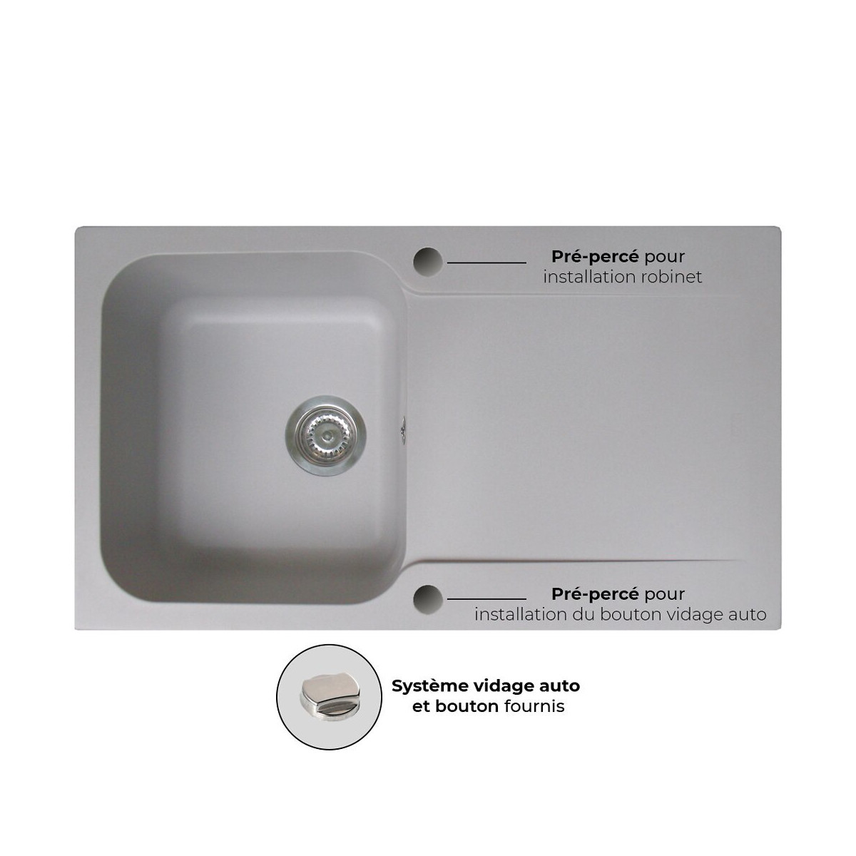 | Type vidange évier | Vidange automatique fournie |