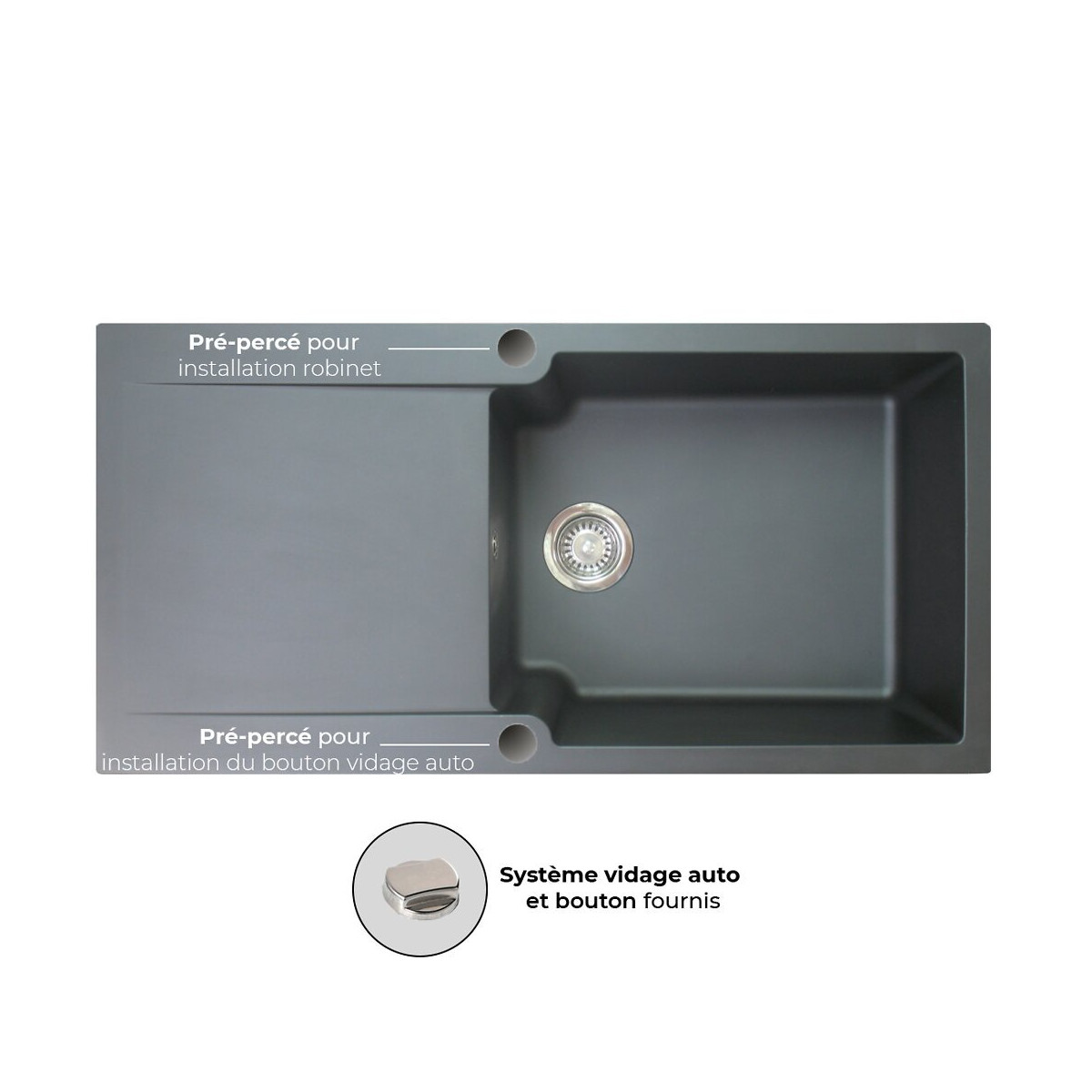 Lisse Évier Réversible 1 Grande Cuve 1 Égouttoir En Résine Noir