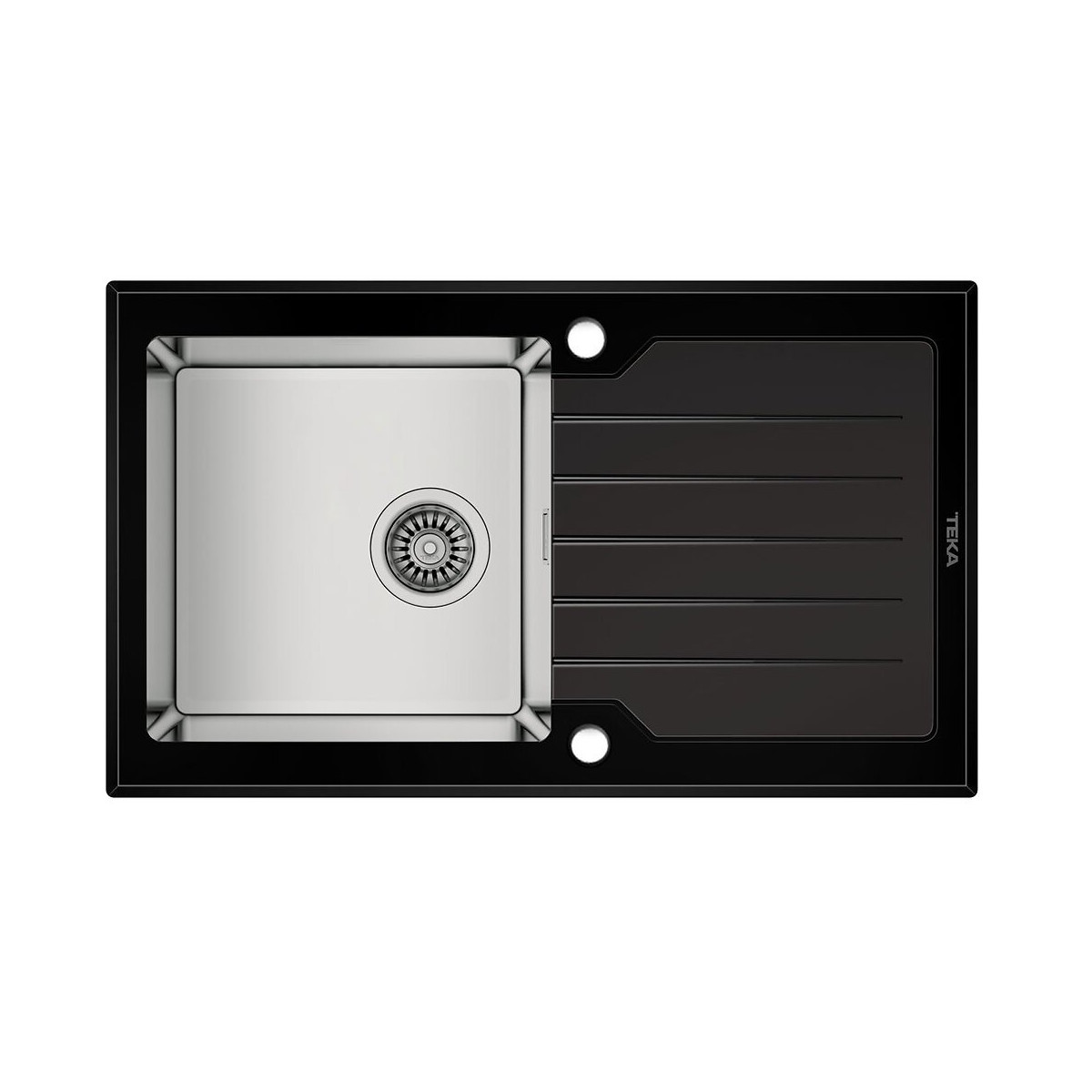 Lux 1 Cuve 1 Égouttoir 86 Verre Noir & Inox Poli