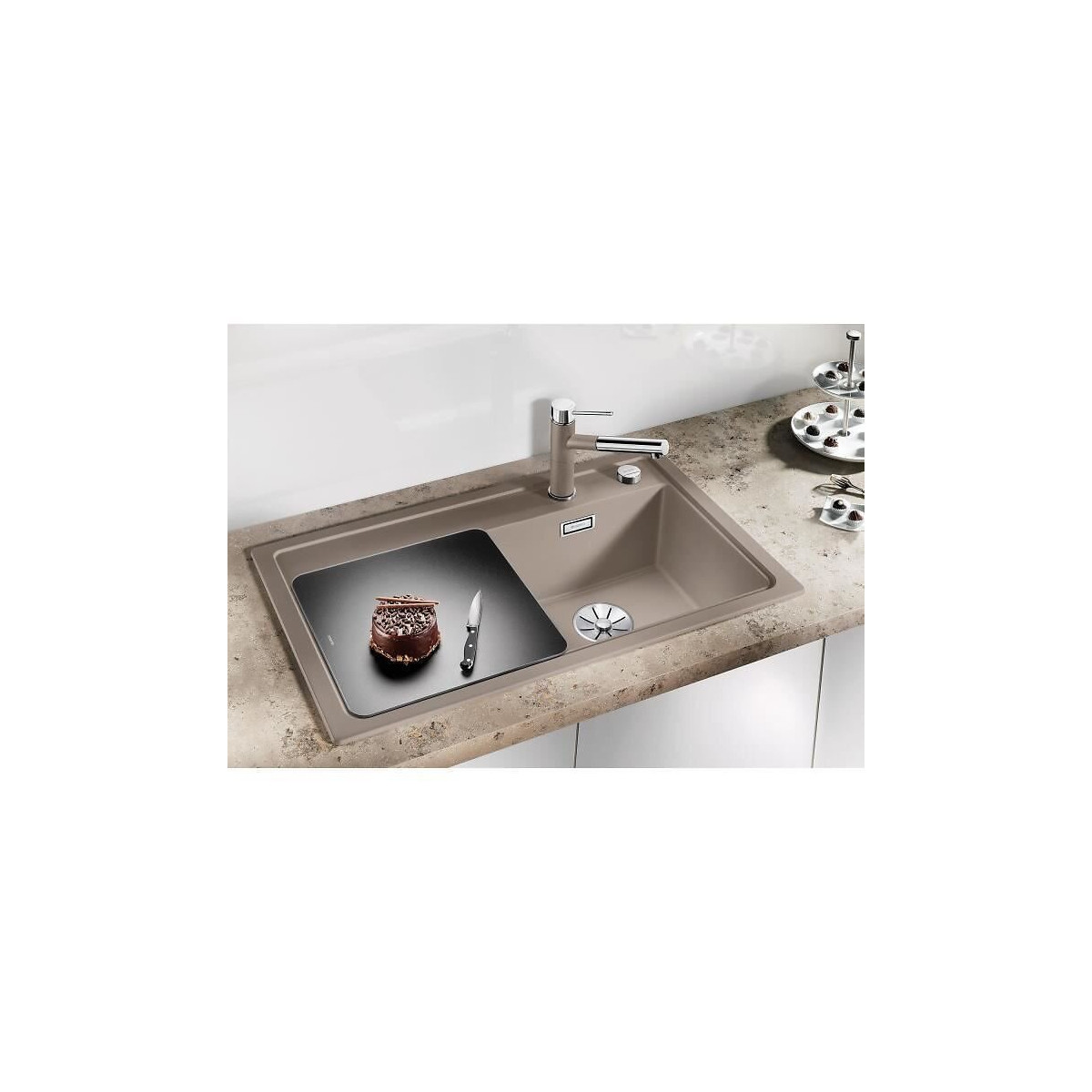 Blanco Zenar 45s - Evier - Silgranit - 1 Cuve - Egout A Droite - Vidage Auto - Siphon Inclus - Planche A Decouper Bois - Blanc