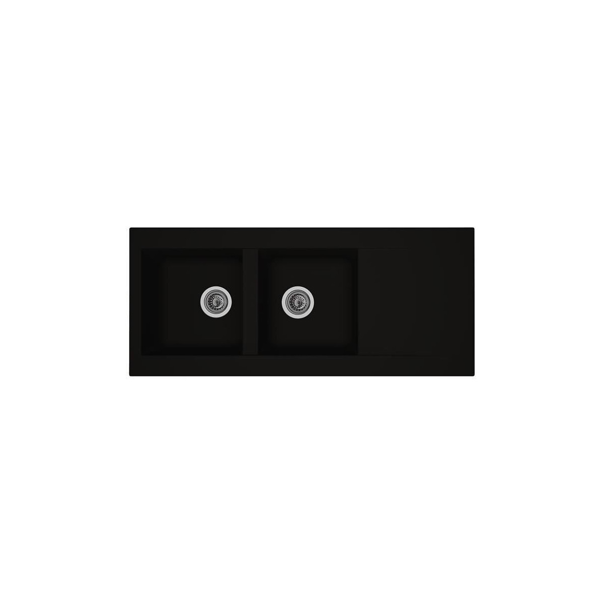 Evier Einna PIMC 2 bacs - 1 égouttoir - Réversible - Vidage manuel bonde Ø90 mm - Coloris : noir - Dimensions : 116x50 cm.