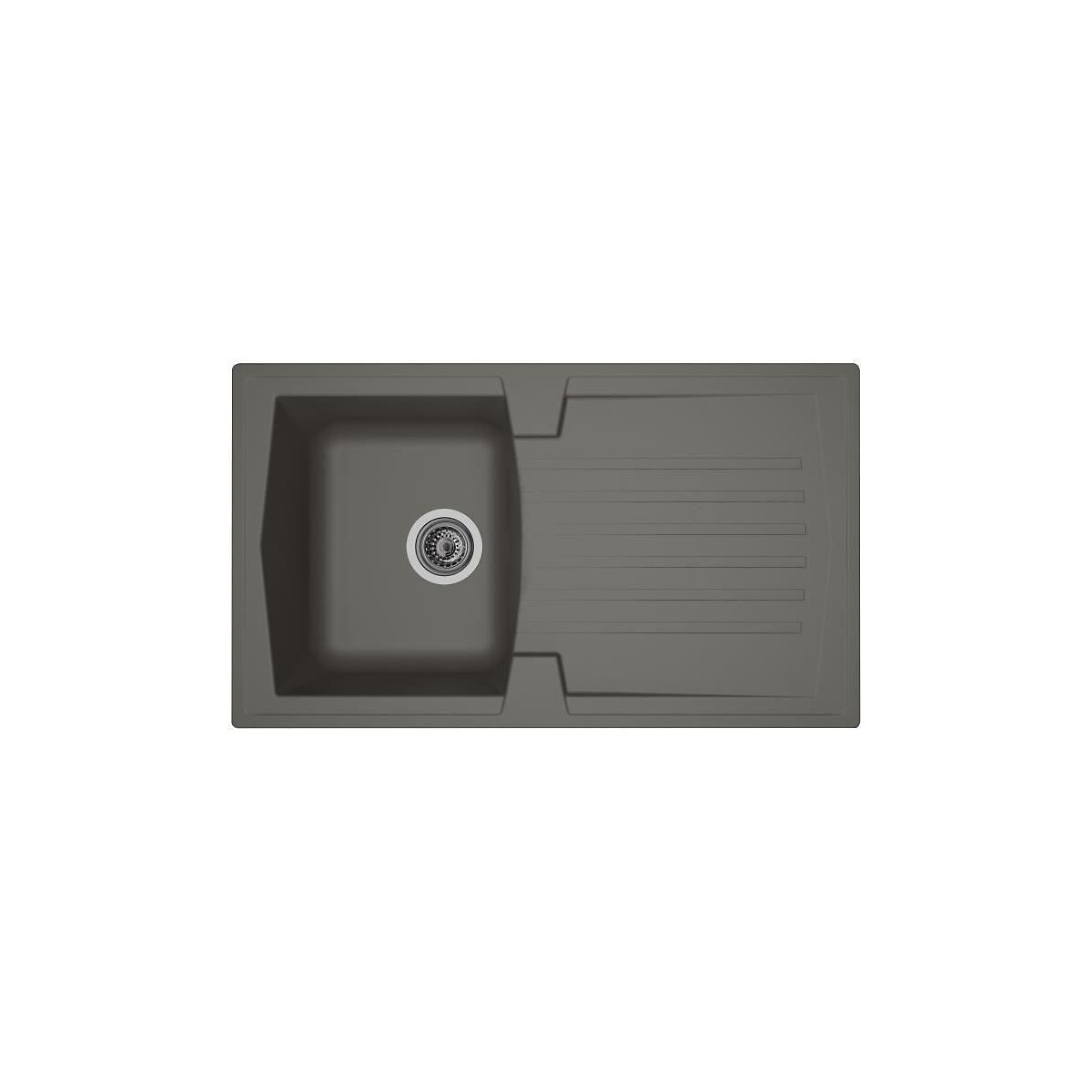 Evier Arena SMC 1 bac - 1 égouttoir - Réversible - Vidage manuel bonde Ø90 mm - Coloris : gris béton - Dimensions : 86x50 cm.