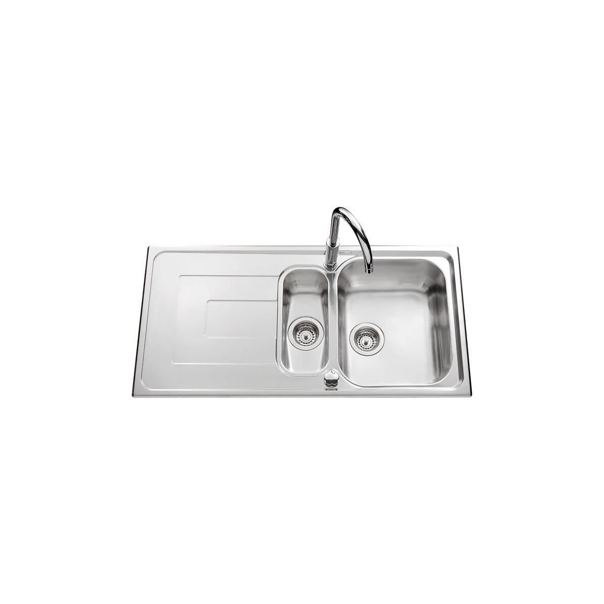 Evier 1,5 bacs 1 égouttoir en inox lisse - Dimensions : 100x50 cm - Vidage automatique - Inox 18/10 - Norme CE - Réversible - Bonne tenue a la température - Entretien facile.