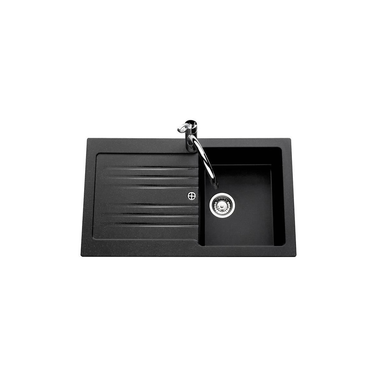 Ewi Evier Cuisine A Encastrer 1 Bac + 1 Egouttoir Spirelle - Resine - 86 X 50 Cm - Noir