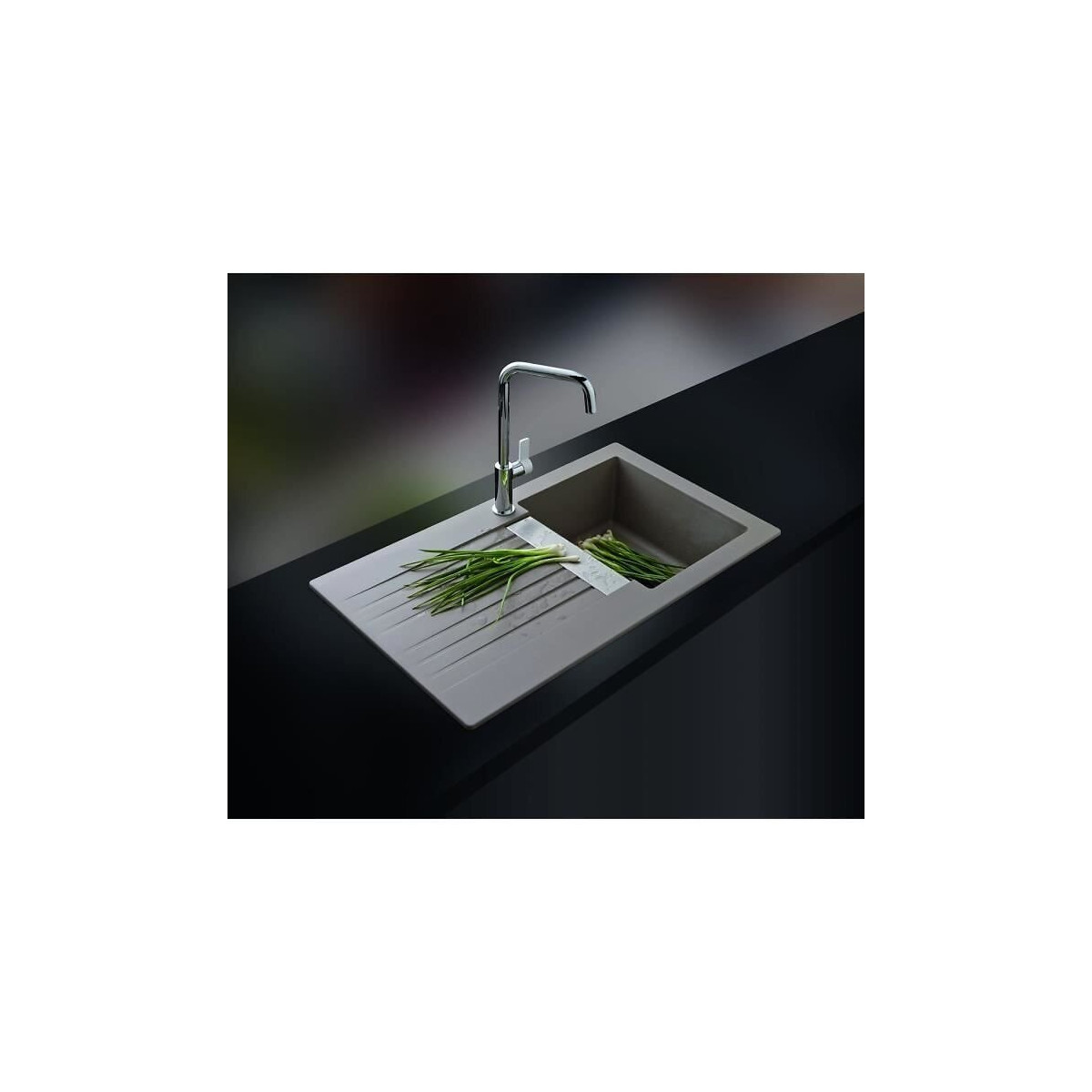 Evier Soledad 1 bac 1 égouttoir - 86x50cm - Vidage manuel - En matériau de synthese - CE - Facile d'entretien - Résistant a la chaleur : 180° - Forme rectangulaire - Utilisation intérieure - Evier réversible - A encastrer - Coloris : Greige.