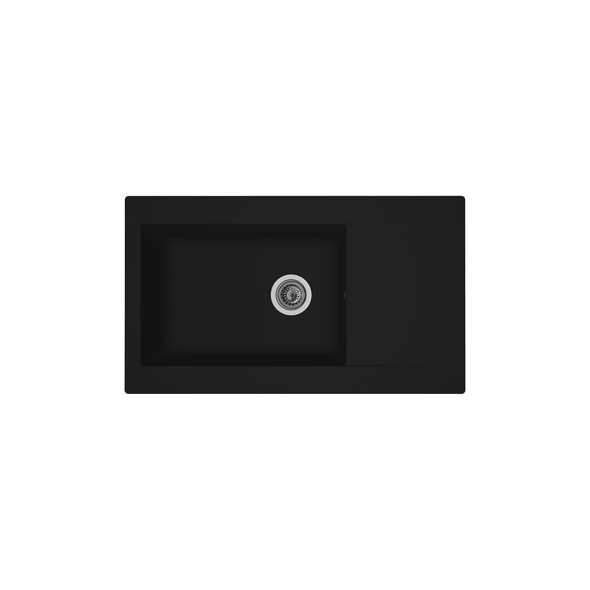 Evier Einna PIMC 1 grand bac - 1 égouttoir - Réversible - Vidage manuel bonde Ø90 mm - Coloris : noir - Dimensions : 86x50 cm.