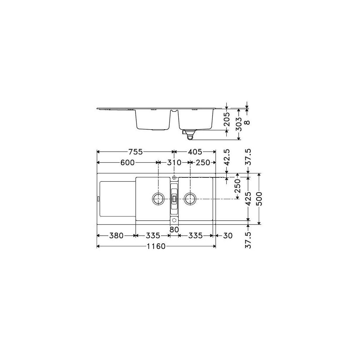 Evier Maris MRG621 - Fragranit Durakleen II : composé à 80 % de Quartz naturel de haute qualité venant d'Allemagne et de 20 % de Résine acrylique chimiquement inerte qui rend la surface robuste et les couleurs lumineuses. Son aspect lisse et mat ne craint ni chocs thermiques (matériau testé en laboratoire jusqu'à 280°C), ni rayures, ni agressions chimiques - 2 cuves + égouttoir - Prépercé Ø 35 pour robinetterie - Vidage Gain de place comprenant bondes manuelles inox Ø 90 et siphon - Pour sous-meuble de 90 cm - Garantie 10 ans sur tous défauts.