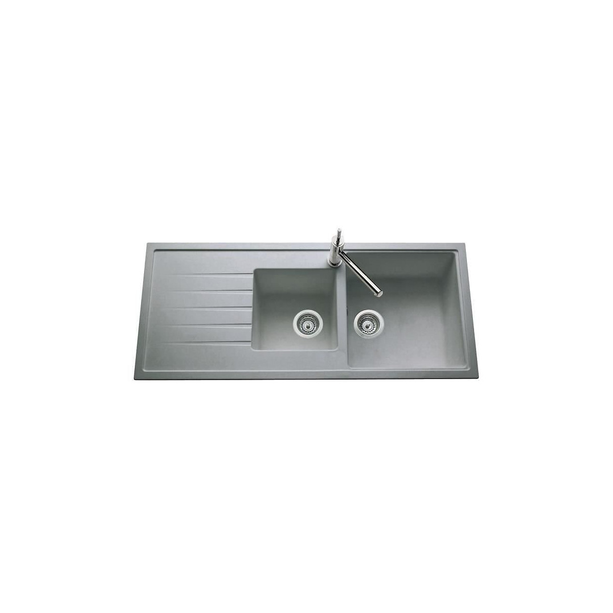 Evier 2 bacs avec 1 égouttoir en polygranit gris - Dimensions : 116x50x20 cm - Vidage manuel - Norme CE - Réversible - Grande résistance a la rayure - Facilité d'entretien - Non poreux.