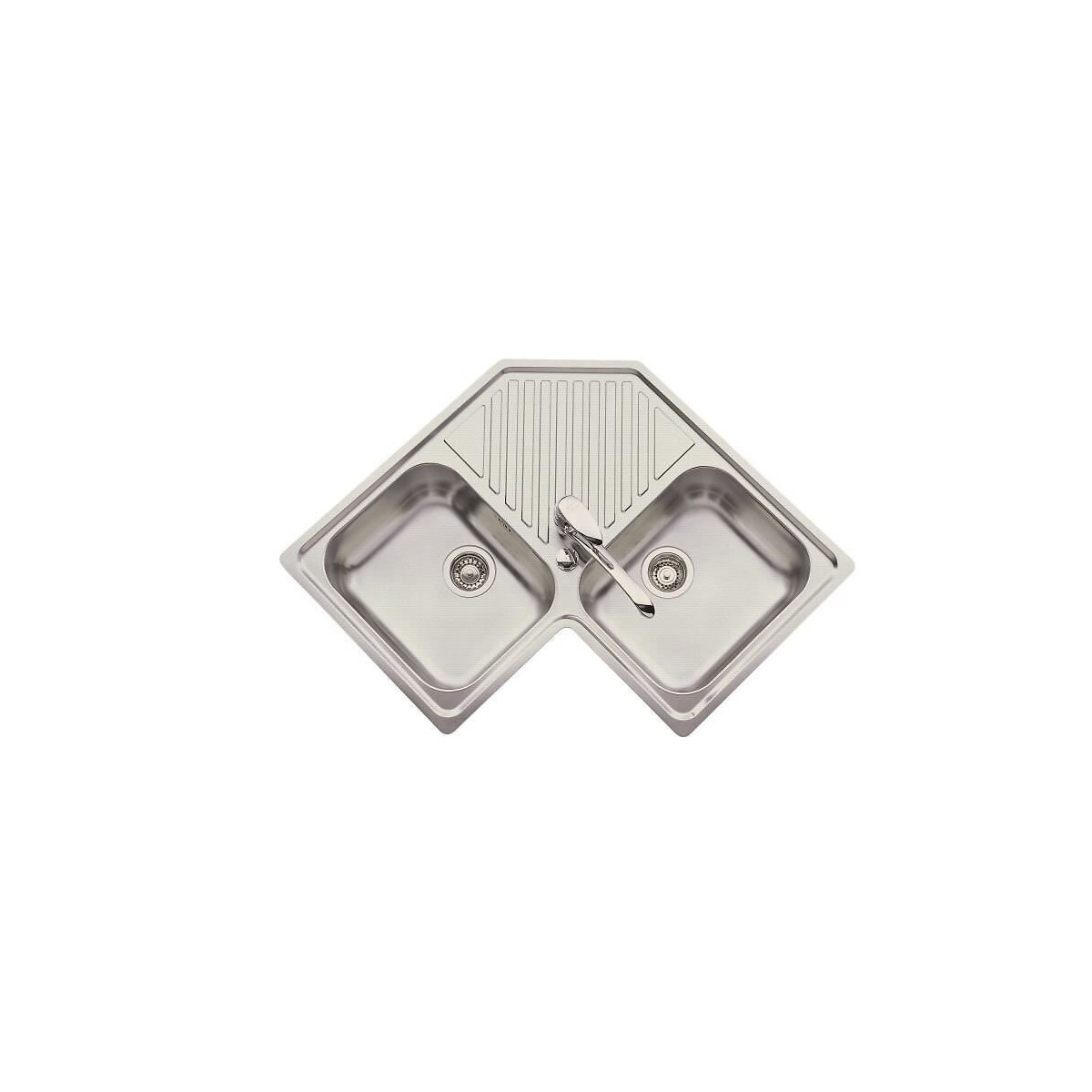 Evier angle 2 bacs en inox nid abeille - Dimensions : 83x83x19 cm - Vidage automatique - Hygiénique - Facilité d'entretien - Résistance température - Finition anti-rayures.
