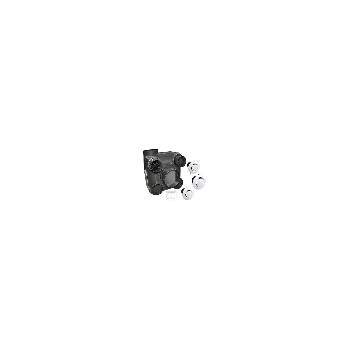 VMC AVEC PIQUAGES DEMONTABLES CALIBRES AUX DEBITS La ventilation mécanique contrôlée (VMC) assure un renouvellement constant de l'air du logement, en évacuant l'humidité et les principaux polluants.Cette VMC extrait ainsi l'air vicié des sanitaires (SDB, WC) et de la cuisine grâce à des bouches d'extraction. La grande vitesse en cuisine peut être actionnée par interrupteur.L'air neuf pénètre par des entrées d'air autoréglables (vendues séparément) situées sur le haut des menuiseries dans les pièces de vie (salon, chambres).Cette VMC autoréglable est idéale en remplacement d'une ancienne VMC. Marque du produit: S&P Usage du produit: VMC AUTOREGLABLE POUR HABITAT INDIVIDUEL Composition du kit: UN CAISSON, UNE BOUCHE CUISINE , DEUX BOUCHES SANITAIRES, UN COMMUTATEUR ET UNE CORDELETTE DE SUSPENSION Compatible grand logement (jusqu'à 6 sanitaires): Non Niveau sonore (en dB(A)): 25 Nombre de piquages sanitaires (diamètre 80 mm): 2 Diamètre piquage rejet (en mm): 125 Sortie d'élimination des condensats: Non Emplacement du caisson préconisé: Combles Taille du logement maximale: T5 Eligible à la prime énergie: Non Poids du produit nu (en kg): 3.37 Avec filtration de l'air insufflé: Non Mode de livraison direct spécifique: 010 - Colis Recommandé pour la RT 2012: Non Objet connecté: Non Produit emballé : hauteur (en cm): 32.8 Produit emballé : largeur (en cm): 42.8 Produit emballé : profondeur (en cm): 27.8 Produit emballé : poids (en kg): 3.37 Indication du geste de tri (triman): Nos produits et emballages peuvent faire l'objet d'une consigne de tri. Pour en savoir plus : www.quefairedemesdechets.fr