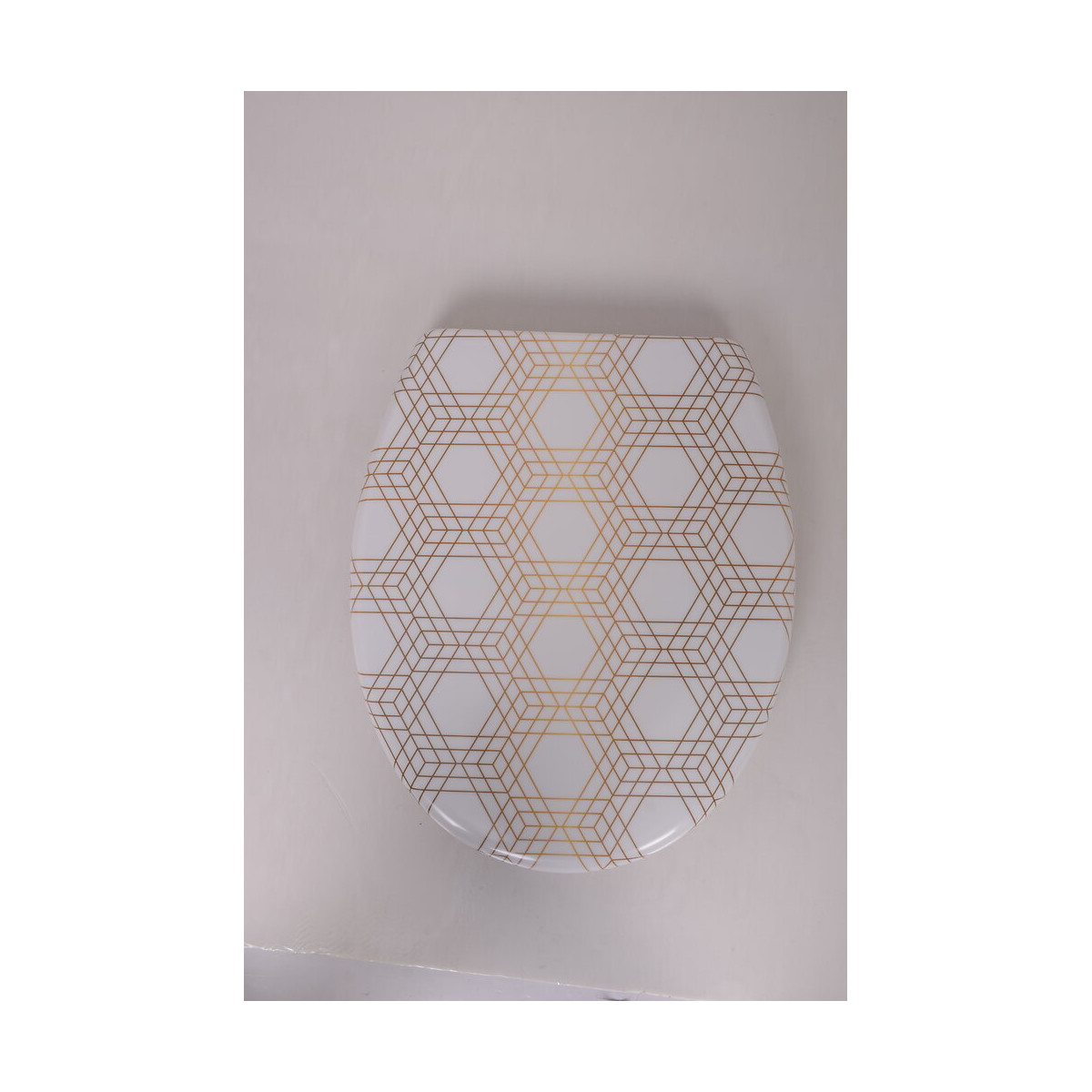 ,Abt en thermodur charnière inox frein de chute déclipsable 1 bouton fixation par le dessus , avec couvercle décoré recto motif "doré" ,Spécifications techniques