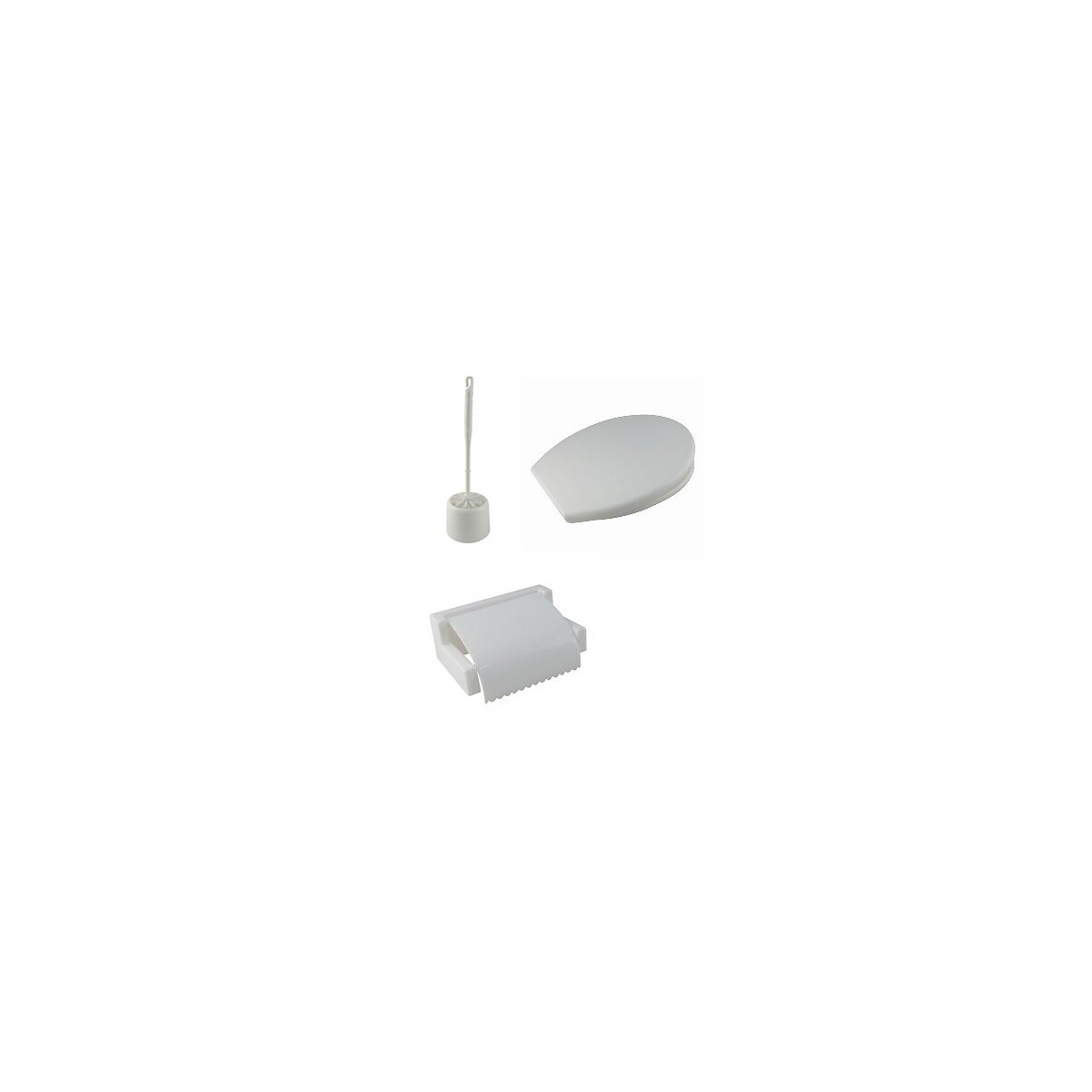 Coffret de 3 accessoires pour wc comprenant un abattant, un dérouleur, un pot à balai. Coloris - coloris : blancSpécifications techniques