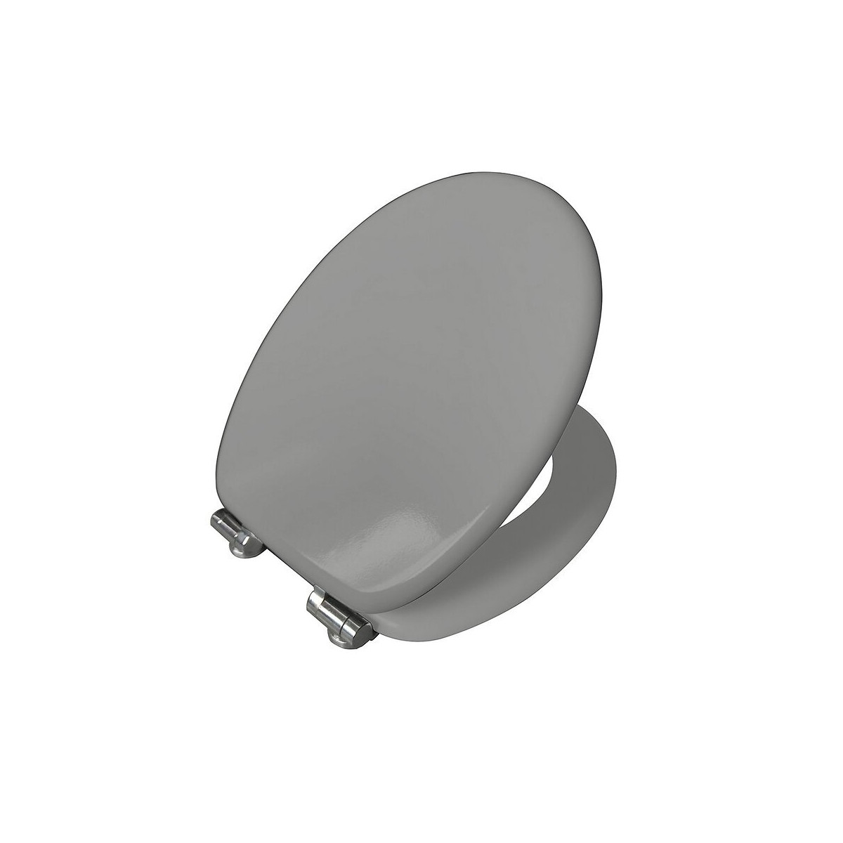 Abattant de toilette en bois moulé - Coloris gris - C harnières : zinc - fermeture lenteSpécifications techniques