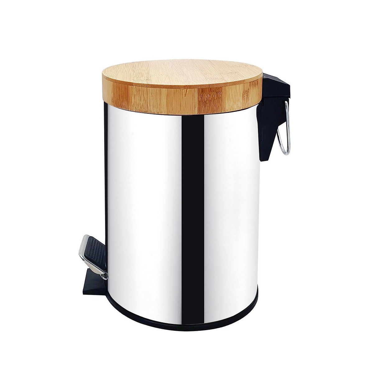 Poubelle ronde 5L - bambou et inox - coloris : Bamboo-métal - couvercle avec femrmeture lente - Dim. : Dia17x26cmSpécifications techniques