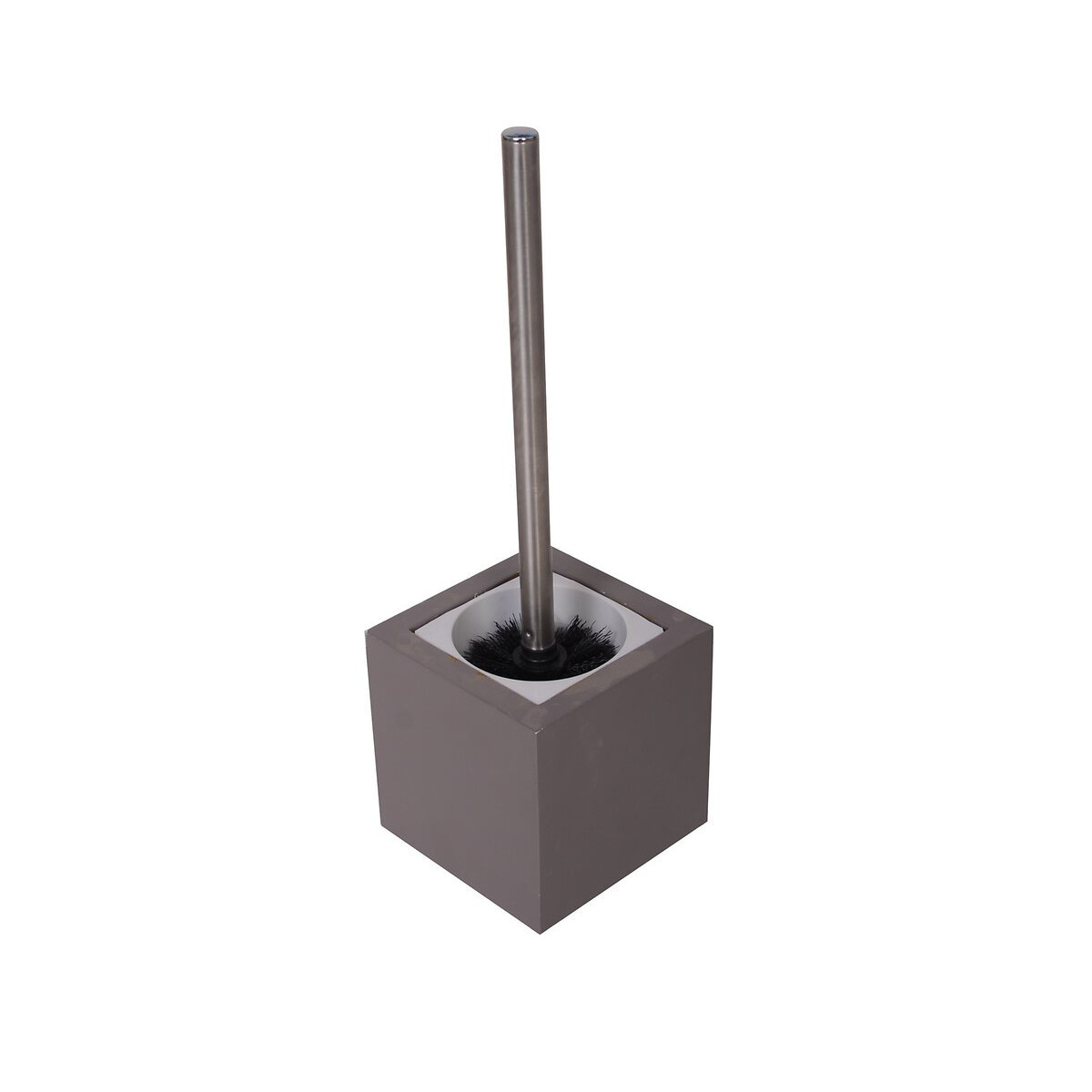Brosse de toilette - Bois + Pot intérieur en plastique - manche en plastique - Coloris: Taupe Dim. :12x12x37cm