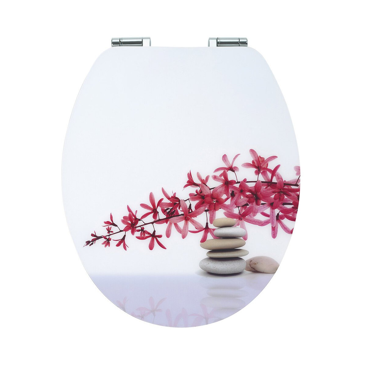 Abattant Diplomat décors Zen frein de chute - WIRQUIN Matériau : abattant en bois compressé Poids : 3,4 Kg Charnières inoxydables : anti-corrosion soft close Finition : acrylique Adaptabilité : cuvettes standards Testé 20 000 cycles ouverture/fermeture