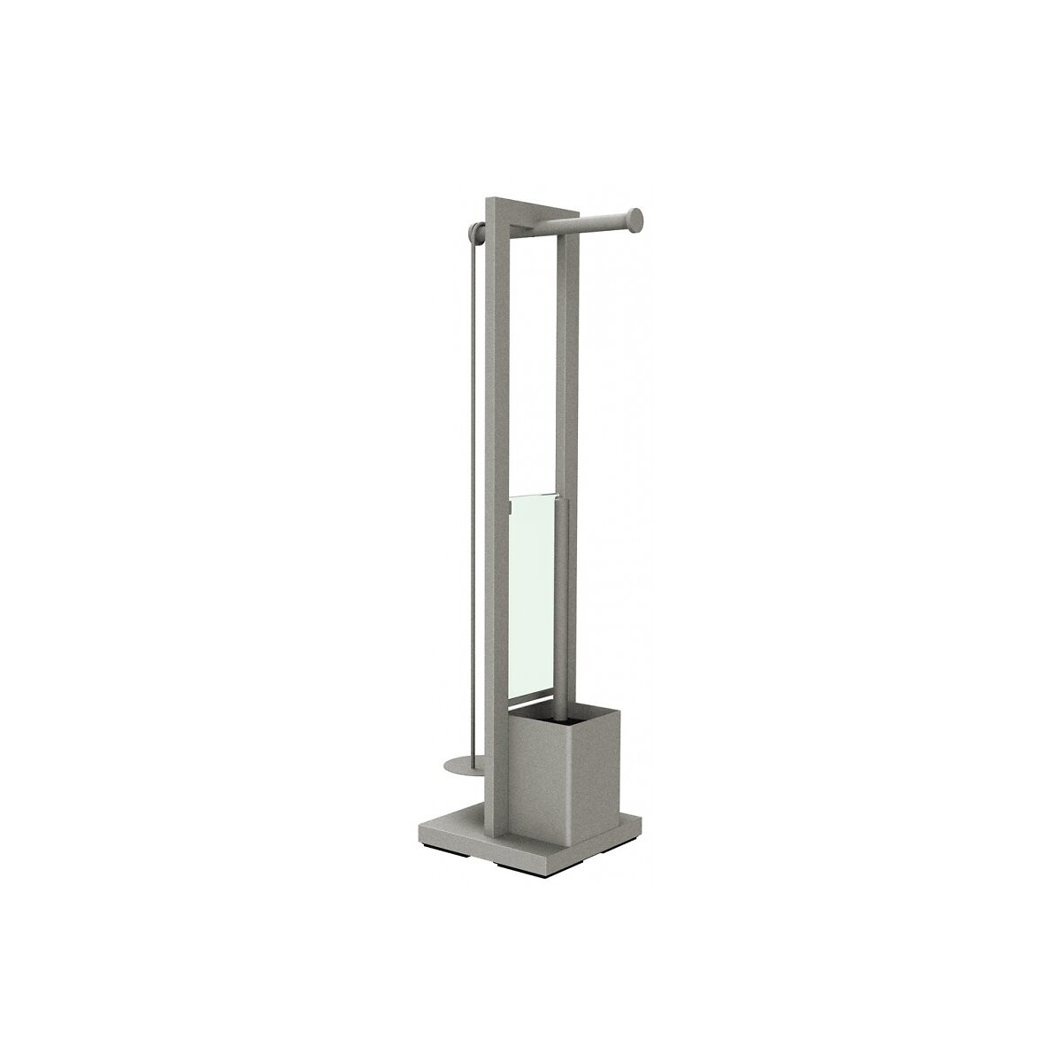 Valet WC multifonction en aluminium laqué gris mat à poser Fonction: Dérouleur, Réserve papier, Brosse Son design simple et épuré permet aisément de l'associé à un style industriel. Il remplira ses tâches avec simplicité, il stockera et distribuera vos rouleaux tout en vous permettant le nettoyage de votre cuvette grâce à sa brosse.