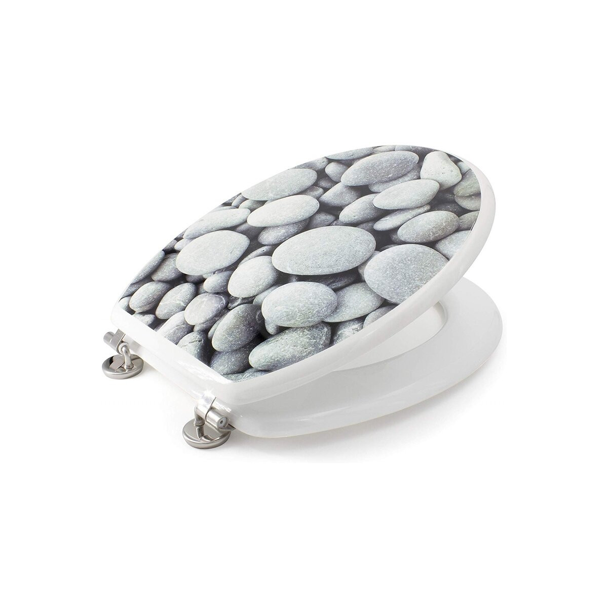 Abattant wc galet de plage Composition : bois moulé Charnières en inox