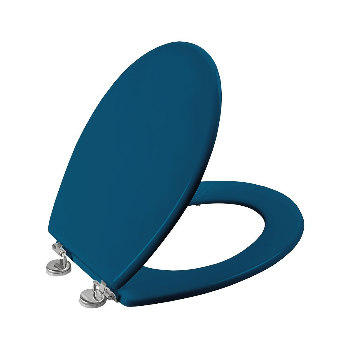 Cet abattant WC BOLIVA offre un grand confort grâce au contact chaleureux du bois. Charnières en Inox Fixation par le dessous Abattant en HDP : fibre de bois haute densité Adapté aux cuvettes de forme standard Dimensions : 36 x 5,2 x 45,7 cm Poids : 3,35 kg L'abattant WC BOLIVA est disponible en 3 couleurs : Blanc Bleu canard GrisSpécifications techniques