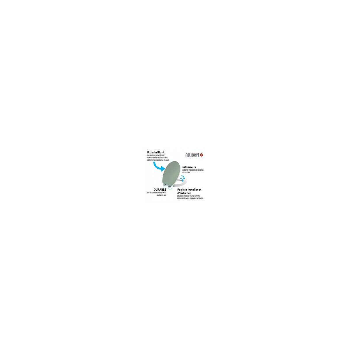 Qualité, tendance et ultra brillant Faites le choix d'un abattant coloris vert de gris pour parfaire votre installation ! Coloris ultra brillant - Couvercle parfaitement plat et recouvert d'acrylique couleur vert de gris pour une teinte profonde et ultra brillante. Résistant - Abattant de type Thermodur facile d'entretien et résistant à l'humidité ! Silencieux - Fermeture progressive du couvercle et de l'assise avec son système Soft Close (frein de chute). Durable - Abattant résistant. - Charnières inox. Facile d'entretien - Déclipsable sans bouton pour un nettoyage facile et rapide ! Facile à installer - Dimensions standards (compatible avec les cuvettes standards). - Lot de fixations écrous rapides inclus. Coloris Assorti au lave mains Porto vert de gris 163154. Abattant garantie 5 ans. Dimensions : Largeur : 38 Cm. Hauteur : 6 Cm. Profondeur : 43,5 Cm.Spécifications techniques