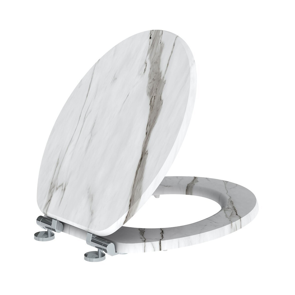 Abattant Wc En Bois Compressé Décor Marbre Blanc 4 Faces Naturo