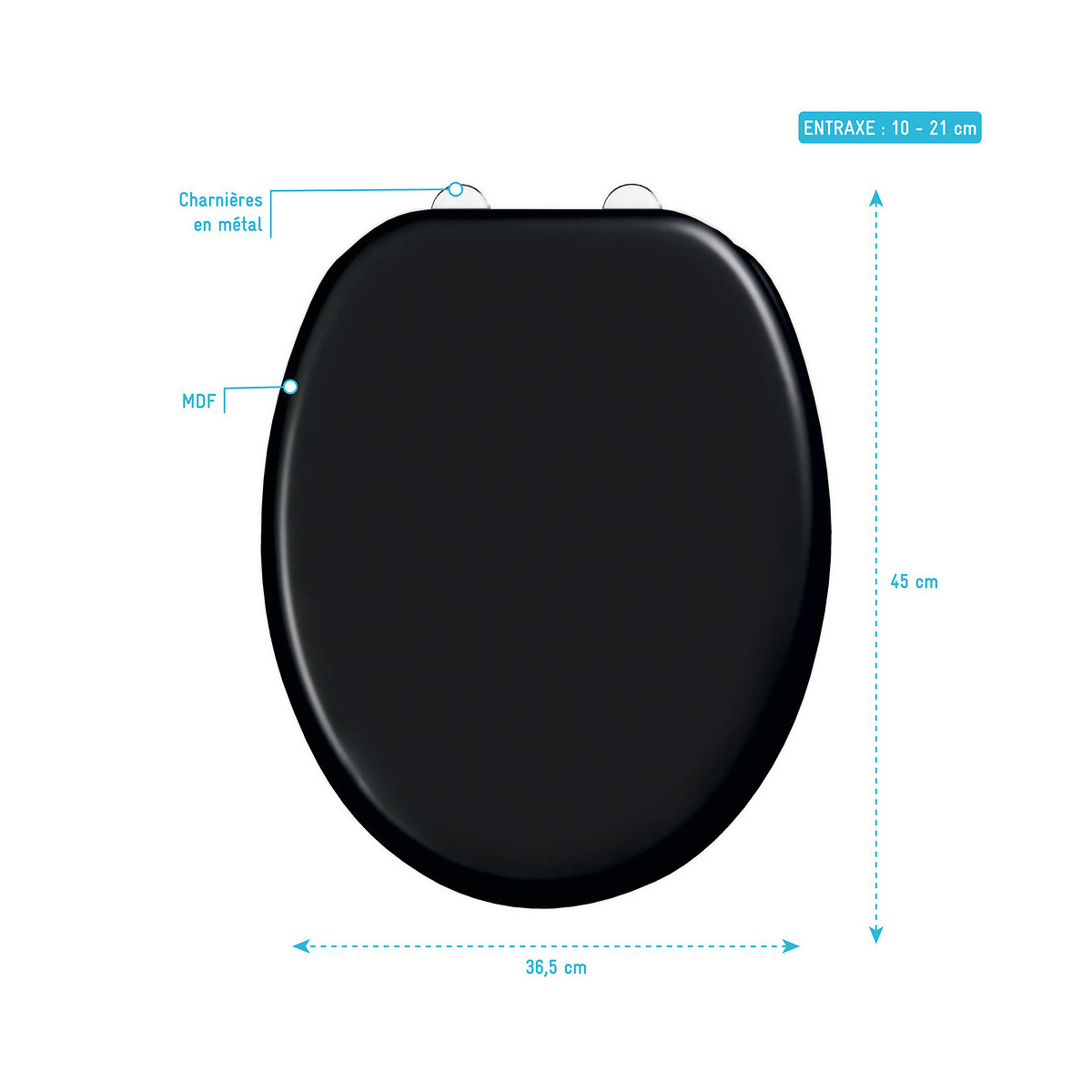 Abattant pour WC coloris Noir Caractéristques du produit : Abattant en MDF Charnière en métal réglable Coloris Noir Dimension de l'abattant : Longueur : 46 cm Largeur : 38 cm Entraxe de fixation : 10 - 21 cm Garantie 2 ans pièces uniquement Cocorico ! MyShowerRoom est une entreprise Française et toute la conception de nos produits est également Française. Ce qui est un véritable plus pour être au plus près de ses clients et avoir une meilleure connaissance de leurs attentes. Qui sommes nous L’HISTOIRE DE MYSHOWERROOM Nous avons créé MyShowerRoom en 2003 avec l’ambition de démocratiser le design et l’innovation dans la salle de bain pour faire de cette pièce un lieu à part entière, un véritable lieu d’histoires à vivre pour toute la famille. Nos cabines de douche et meubles de salle de bain dans l’ère du temps à des tarifs très accessibles. Nos nombreux brevets garantissent l’originalité de notre gamme de cabines de douches. Et nos ingénieurs mettent en œuvre tout leur savoir-faire et toutes les technologies innovantes au service d’une simplicité d’installation et d’utilisation incomparable pour tous. ÊTRE BIENVEILLANT AVEC NOS CLIENTS Notre service client a un objectif : rendre nos clients heureux. Pour cela nous veillons à répondre dans les 24h aux demandes clients. Mais aussi de toujours apporter une solution et entière satisfaction à nos clients. CONSTRUIRE DES PRODUITS TOUJOURS PLUS PERFORMANTS Nos ingénieurs, ainsi que nos équipes terrain consacrent tous leurs efforts à créer des produits adaptés à vos besoins, et toujours plus innovants grâce à nos technologies. Notre objectif est d’être votre unique interlocuteur pour tous vos projets de salle de bain. CONCRÉTISER LES RÊVES DE CHACUN Un projet de salle de bain ? Nous le réalisons ! Lieu de détente et de relaxation par excellence, la salle de bain est une des pièces maîtresse de la maison. Chez MyShowerRoom, nous mettons tout en oeuvre afin que ce rêve devienne réalité. PROPOSER UNE GAMME COMPLÈTE DE PRODUITS Nous vous proposons grâce à notre boutique en ligne une gamme complète de produits Made in MyShowerRoom pour équiper, et accessoiriser votre salle de bain. Un catalogue que nous renouvelons régulièrement avec les dernières technologies MyShowerRoom. APPORTER UNE EXPERTISE HUMAINE Parce que l’humain passe avant tout, nous travaillons avec les meilleurs experts. La satisfaction de nos clients est notre seule et unique priorité. Chaque problème a une solution, et c’est dans cette optique que nous avons mis en place un chat pour échanger directement avec nos équipes. NOTRE CENTRE LOGISTIQUE 11 000 m² d’entrepôt 7000 palettes en stock 1 800 colis traités par jour Plus de 260 préparations de commandes quotidiennes 12 quais de chargement/déchargement CONSEILS & VENTES Une équipe disponible 5 jours sur 7 pour vous accompagner dans vos achats. LIVRAISON GRATUITE Pour toute commande sur le site MyShowerRoom, la livraison est gratuite dans toute la France. UNE GARANTIE DE QUALITÉ Grâce à nos produits brevetés vous bénéficiez de produits uniques. Référence produit: G3151315003 Retrouvez plus d'informations produit et des conseils de montage sur le site Aurlane.