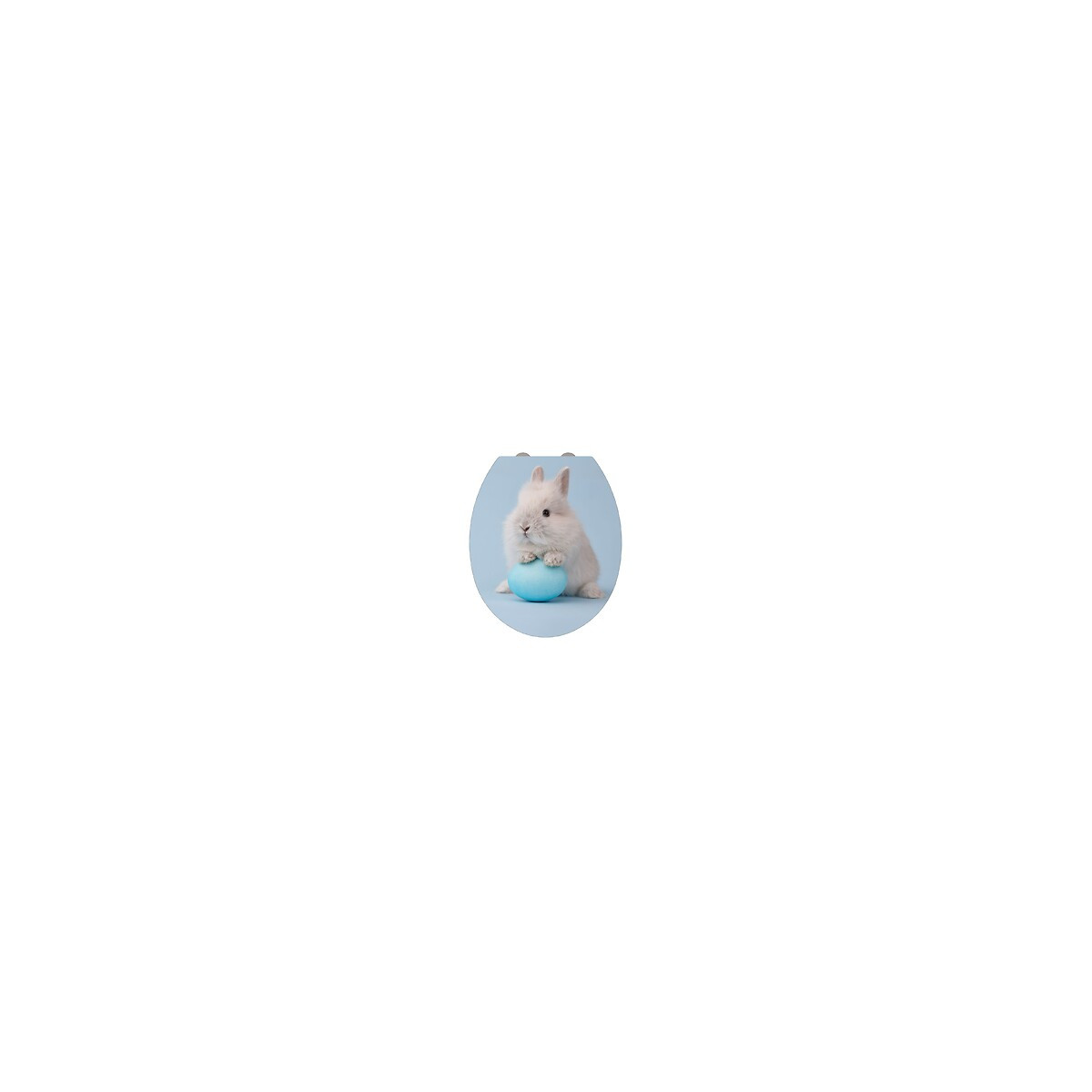 Cet abattant extra-plat avec un lapin sur le couvercle va vous faire craquer ! Naturellement antibactérien, il vous garantie confort et hygiène. Caractéristiques : Format standard (compatible avec les cuvettes standards) Abattant en thermodur Charnières inox pour une excellente durabilité du système de fermeture Fixation par le dessous Déclipsable sans bouton pour un nettoyage facile Fermeture progressive du couvercle et de l'assise Naturellement antibactérien Couvercle plat ultra brillant Fixation écrous rapides incluses Dimensions : 38 x 6 x 43,5 cm Poids : 2,37 kgSpécifications techniques