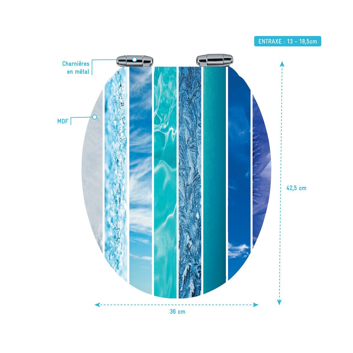 Abattant pour WC Multicouleurs (à dominance bleu) Caractéristique de l'abattant : Décoré sur 4 faces Matière : MDF ( Panneau de fibres de bois de densité moyenne) Charnières en métal Dimension de l'abattant : Largeur : 36 cm Longueur : 42,5 cm Entraxe : 13 - 18,5 cm Réference du produit: 700603 Désignation du produit: PLAYA MyShowerRoom c’est aussi la garantie de durabilité : Nous garantissons un stocks de pièces détachées d’au moins 5 ans Notre visserie est en acier inoxydable ce qui est une garantie anticorrosion Garantie 2 ans pièces uniquement Cocorico ! MyShowerRoom est une entreprise Française et toute la conception de nos produits est également Française. Ce qui est un véritable plus pour être au plus près de ses clients et avoir une meilleure connaissance de leurs attentes. Qui sommes nous L’HISTOIRE DE MYSHOWERROOM Nous avons créé MyShowerRoom en 2003 avec l’ambition de démocratiser le design et l’innovation dans la salle de bain pour faire de cette pièce un lieu à part entière, un véritable lieu d’histoires à vivre pour toute la famille. Nos cabines de douche et meubles de salle de bain dans l’ère du temps à des tarifs très accessibles. Nos nombreux brevets garantissent l’originalité de notre gamme de cabines de douches. Et nos ingénieurs mettent en œuvre tout leur savoir-faire et toutes les technologies innovantes au service d’une simplicité d’installation et d’utilisation incomparable pour tous. ÊTRE BIENVEILLANT AVEC NOS CLIENTS Notre service client a un objectif : rendre nos clients heureux. Pour cela nous veillons à répondre dans les 24h aux demandes clients. Mais aussi de toujours apporter une solution et entière satisfaction à nos clients. CONSTRUIRE DES PRODUITS TOUJOURS PLUS PERFORMANTS Nos ingénieurs, ainsi que nos équipes terrain consacrent tous leurs efforts à créer des produits adaptés à vos besoins, et toujours plus innovants grâce à nos technologies. Notre objectif est d’être votre unique interlocuteur pour tous vos projets de salle de bain. CONCRÉTISER LES RÊVES DE CHACUN Un projet de salle de bain ? Nous le réalisons ! Lieu de détente et de relaxation par excellence, la salle de bain est une des pièces maîtresse de la maison. Chez MyShowerRoom, nous mettons tout en oeuvre afin que ce rêve devienne réalité. PROPOSER UNE GAMME COMPLÈTE DE PRODUITS Nous vous proposons grâce à notre boutique en ligne une gamme complète de produits Made in MyShowerRoom pour équiper, et accessoiriser votre salle de bain. Un catalogue que nous renouvelons régulièrement avec les dernières technologies MyShowerRoom. APPORTER UNE EXPERTISE HUMAINE Parce que l’humain passe avant tout, nous travaillons avec les meilleurs experts. La satisfaction de nos clients est notre seule et unique priorité. Chaque problème a une solution, et c’est dans cette optique que nous avons mis en place un chat pour échanger directement avec nos équipes. NOTRE CENTRE LOGISTIQUE 11 000 m² d’entrepôt 7000 palettes en stock 1 800 colis traités par jour Plus de 260 préparations de commandes quotidiennes 12 quais de chargement/déchargement CONSEILS & VENTES Une équipe disponible 5 jours sur 7 pour vous accompagner dans vos achats. LIVRAISON GRATUITE Pour toute commande sur le site MyShowerRoom, la livraison est gratuite dans toute la France. UNE GARANTIE DE QUALITÉ Grâce à nos produits brevetés vous bénéficiez de produits uniques. Référence produit: 700603 Retrouvez plus d'informations produit et des conseils de montage sur le site Aurlane.