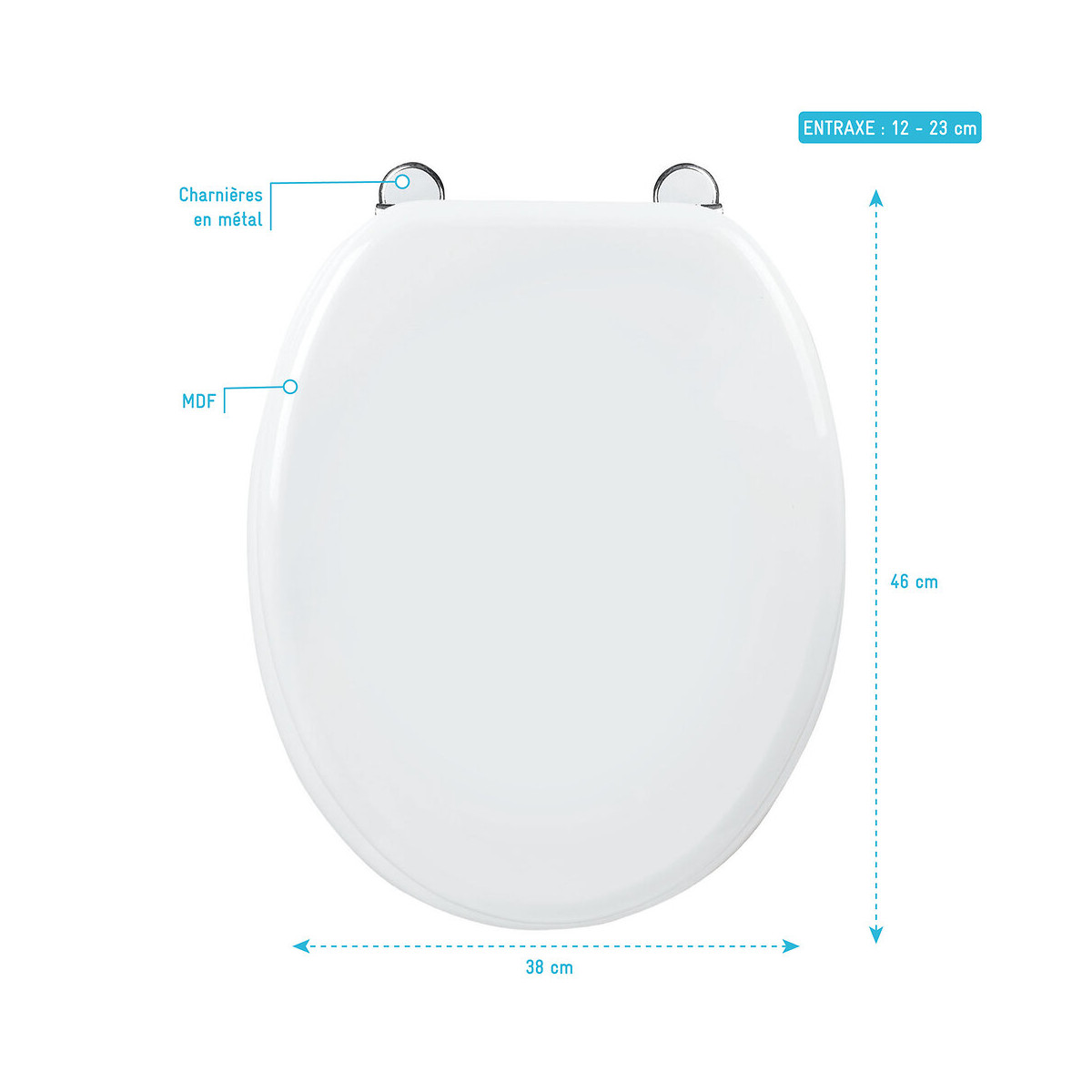 Abattant pour WC MOON Caractéristique de l'abattant : Matière : MDF (panneau de fibres de bois de densité moyenne) Charnière en métal réglable Dimension de l'abattant : Hauteur : 38 cm Longueur : 46 cm Entraxe : 12 - 23 cm Garantie 2 ans pièces uniquement Cocorico ! MyShowerRoom est une entreprise Française et toute la conception de nos produits est également Française. Ce qui est un véritable plus pour être au plus près de ses clients et avoir une meilleure connaissance de leurs attentes. Qui sommes nous L’HISTOIRE DE MYSHOWERROOM Nous avons créé MyShowerRoom en 2003 avec l’ambition de démocratiser le design et l’innovation dans la salle de bain pour faire de cette pièce un lieu à part entière, un véritable lieu d’histoires à vivre pour toute la famille. Nos cabines de douche et meubles de salle de bain dans l’ère du temps à des tarifs très accessibles. Nos nombreux brevets garantissent l’originalité de notre gamme de cabines de douches. Et nos ingénieurs mettent en œuvre tout leur savoir-faire et toutes les technologies innovantes au service d’une simplicité d’installation et d’utilisation incomparable pour tous. ÊTRE BIENVEILLANT AVEC NOS CLIENTS Notre service client a un objectif : rendre nos clients heureux. Pour cela nous veillons à répondre dans les 24h aux demandes clients. Mais aussi de toujours apporter une solution et entière satisfaction à nos clients. CONSTRUIRE DES PRODUITS TOUJOURS PLUS PERFORMANTS Nos ingénieurs, ainsi que nos équipes terrain consacrent tous leurs efforts à créer des produits adaptés à vos besoins, et toujours plus innovants grâce à nos technologies. Notre objectif est d’être votre unique interlocuteur pour tous vos projets de salle de bain. CONCRÉTISER LES RÊVES DE CHACUN Un projet de salle de bain ? Nous le réalisons ! Lieu de détente et de relaxation par excellence, la salle de bain est une des pièces maîtresse de la maison. Chez MyShowerRoom, nous mettons tout en oeuvre afin que ce rêve devienne réalité. PROPOSER UNE GAMME COMPLÈTE DE PRODUITS Nous vous proposons grâce à notre boutique en ligne une gamme complète de produits Made in MyShowerRoom pour équiper, et accessoiriser votre salle de bain. Un catalogue que nous renouvelons régulièrement avec les dernières technologies MyShowerRoom. APPORTER UNE EXPERTISE HUMAINE Parce que l’humain passe avant tout, nous travaillons avec les meilleurs experts. La satisfaction de nos clients est notre seule et unique priorité. Chaque problème a une solution, et c’est dans cette optique que nous avons mis en place un chat pour échanger directement avec nos équipes. NOTRE CENTRE LOGISTIQUE 11 000 m² d’entrepôt 7000 palettes en stock 1 800 colis traités par jour Plus de 260 préparations de commandes quotidiennes 12 quais de chargement/déchargement CONSEILS & VENTES Une équipe disponible 5 jours sur 7 pour vous accompagner dans vos achats. LIVRAISON GRATUITE Pour toute commande sur le site MyShowerRoom, la livraison est gratuite dans toute la France. UNE GARANTIE DE QUALITÉ Grâce à nos produits brevetés vous bénéficiez de produits uniques. Référence produit: G3143280001 Retrouvez plus d'informations produit et des conseils de montage sur le site Aurlane.